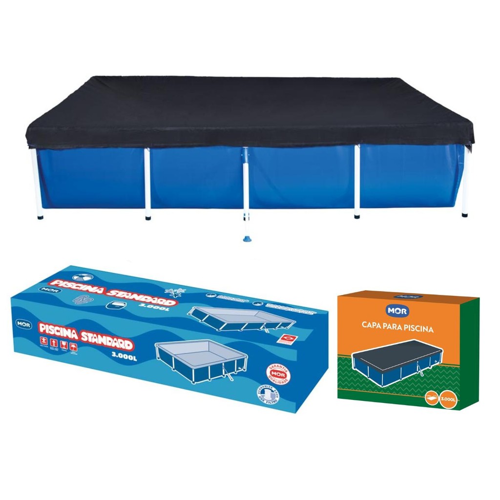 Piscina Retangular 3000 Litros Estruturada com Capa Mor A Piscina 3.000 litros Mor é forte e resistente, proporcionando diversão para a família toda! Fácil de montar, possui válvula de deságue que conserva o material por mais tempo. Com tripla camada (duas lâminas de PVC com uma trama de poliéster entre elas), a piscina é resistente com estrutura extremamente firme, contando com pés de apoio que reforçam ainda mais sua armação. Para proteger as crianças menores, utilize sempre coletes ou boias de braço, além dos guarda-sóis para garantir sombra e segurança durante a brincadeira. Atenção! Nunca deixe crianças sozinhas perto da água sem supervisão de um adulto. Descrição do produto Marca: Mor Material: PVC Formato: Retangular Cor: Azul Capacidade: 3.000 Litros Medida da piscina com escoras: 2,77m x 2,55m x 58cm. Conteúdo: 1 Piscina 3000 litros Mor 1 Capa para piscina 3000 litros Mor Imagens meramente ilustrativas, todos os itens que ambientam o produto não estão inclusos.