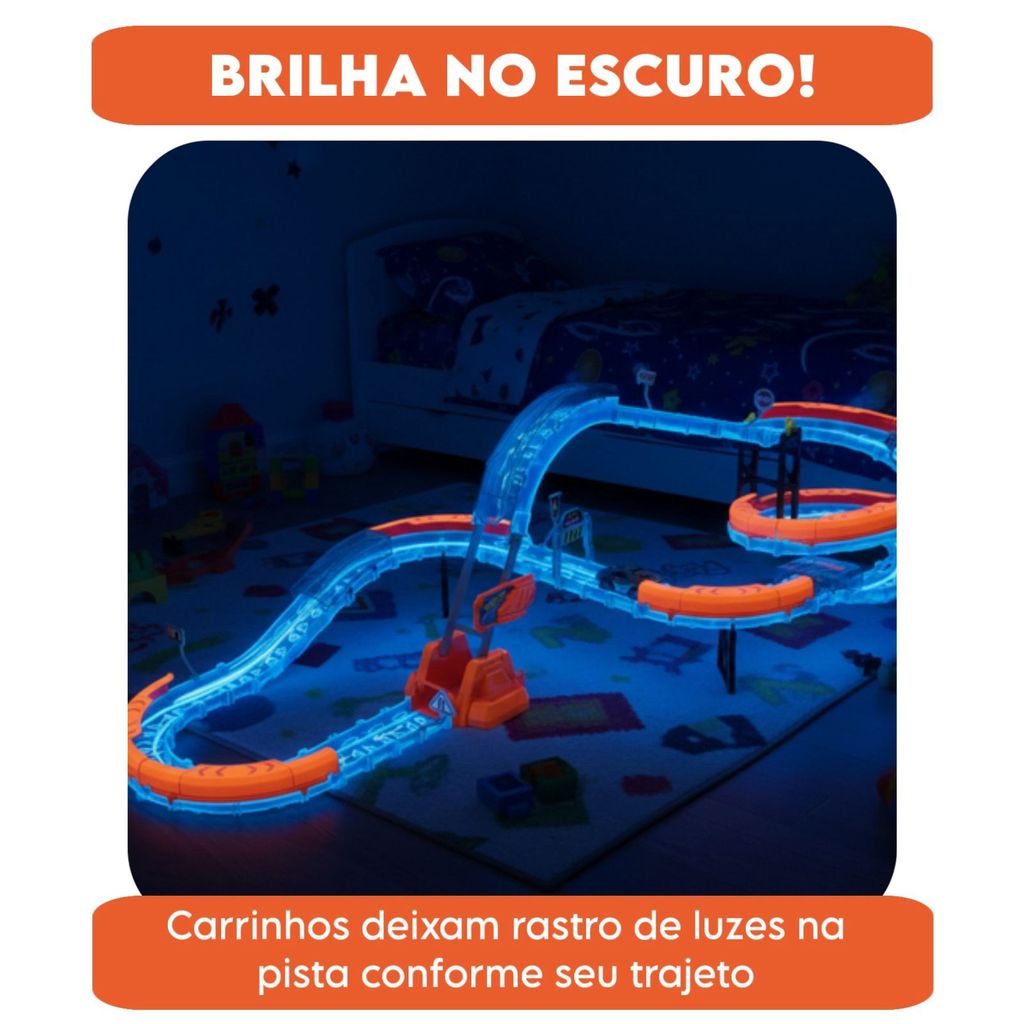 Pista Carrinhos Glow Flip Super Speed Recarregável Com Luz Brilha no Escuro Colorido