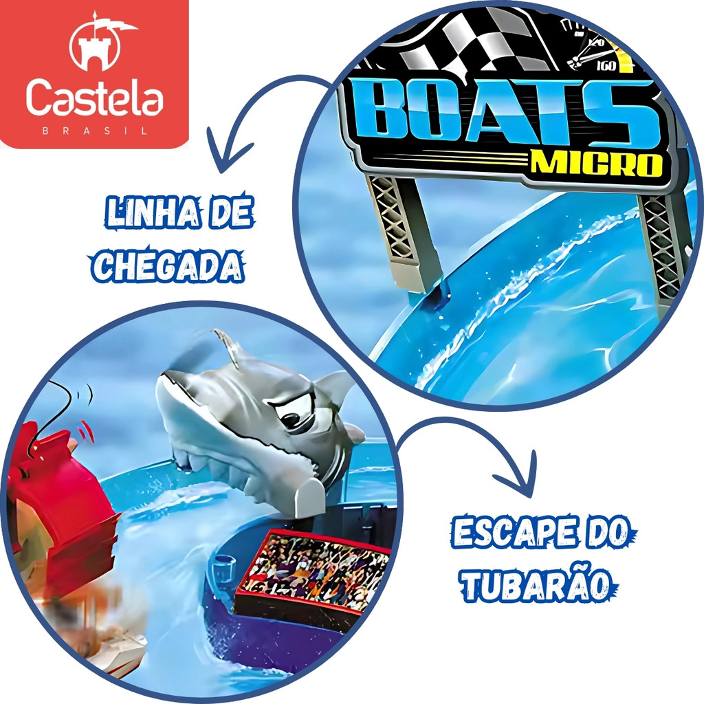 Pista de Barcos Elétricos com Guindaste, Tubarão e Rampa - Castela Prepare-se para aventuras incríveis com a Pista de Barcos Elétricos com Guindaste, Tubarão e Rampa Castela! Este brinquedo emocionante é perfeito para crianças que adoram ação e criatividade. Com um guindaste funcional, um tubarão que torna o desafio ainda mais divertido e uma rampa para manobras radicais, a diversão está garantida por horas! Características: Inclui pista interativa com detalhes emocionantes. Barcos elétricos para movimentação realista. Guindaste funcional para desafios criativos. Tubarão para simular aventuras aquáticas. Rampa para acrobacias e manobras emocionantes. Feito com materiais seguros e duráveis, ideal para crianças. Leve a emoção para as brincadeiras com a Pista de Barcos Elétricos Castela, perfeita para desenvolver a criatividade e proporcionar momentos inesquecíveis! CARACTERÍSTICAS TÉCNICAS: Conteúdo da Embalagem: 1 pista temática, 1 barco motorizado e acessórios diversos Dimensões Aproximadas do Produto: 17cm x 28cm x 59cm (Altura x Largura x Comprimento/Profundidade). Dimensões Aproximadas da Embalagem: 8cm x 32cm x 59cm (Altura x Largura x Comprimento/Profundidade). Material/Composição: Plástico Idade Mínima Recomendada: A partir de 3 anos Participantes: A partir de 1 ou mais pessoas Alimentação: Não se aplica Marca: Castela Brasil Referência: CBS0043 Outras informações: As cores podem variar entre as imagens mostradas acima e o produto. Imagens meramente ilustrativas. Aviso: As informações e imagens divulgadas são de total responsabilidade do fabricante/fornecedor. Produto lacrado e disponível a pronta entrega para todo Brasil! APROVADO PELO INMETRO