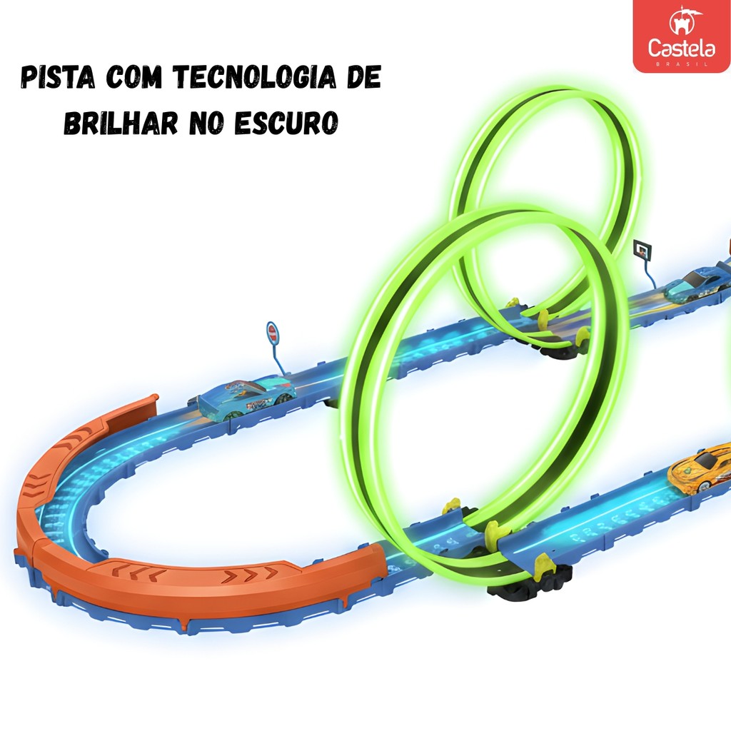 Pista de Carrinho Brilha no Escuro Controle Remoto RC - Castela