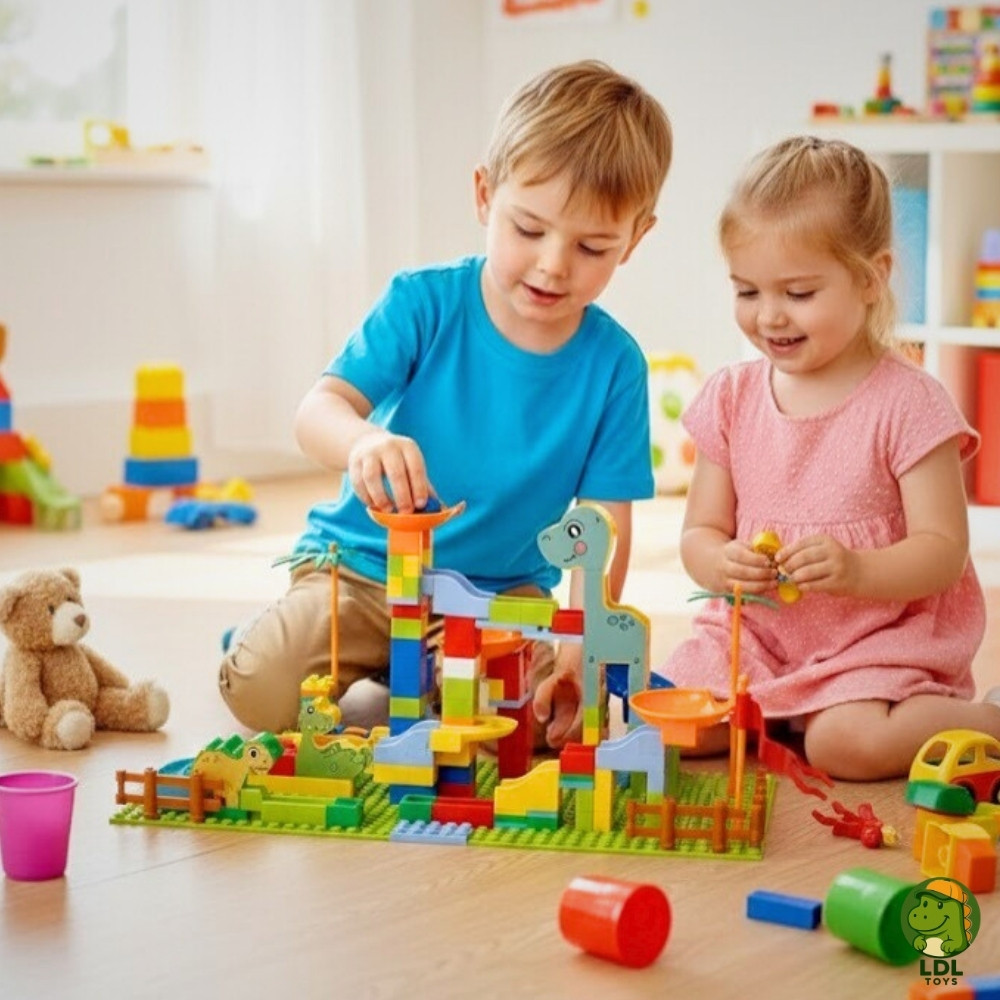 Pista Labirinto Dinossauro Blocos De Montar Mágica 260 Peças Escorrega Bolinha Educativo