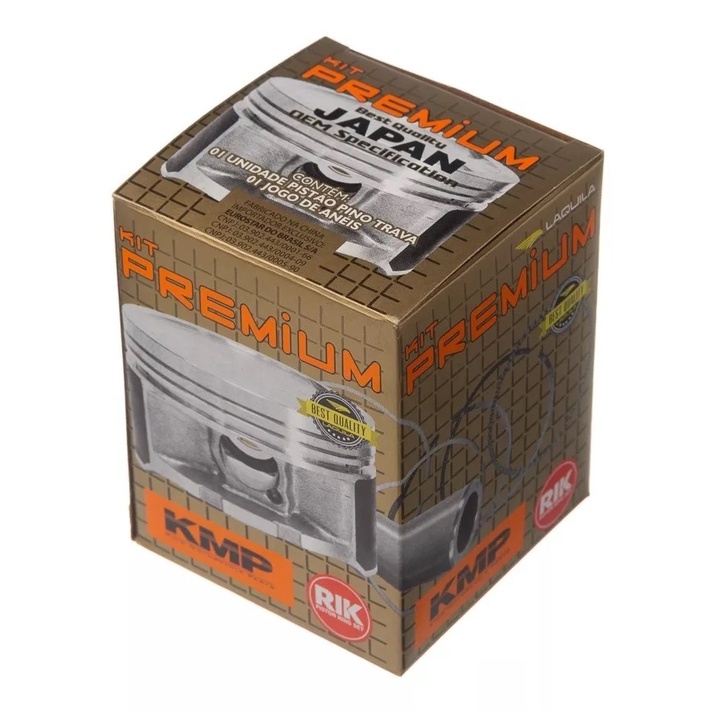 KIT PREMIUM conjunto nobre de Pistao KMP com Anel Rik, capaz de atender os principais modelos de motos baixa cilindrada. Beneficios de um KIT com qualidade OEM, que garante o mesmo desempenho do produto original. Desde 2000 oferecendo melhor qualidade e durabilidade de pistoes e aneis. Os Aneis RIK a maior fabricante de aneis para pistao do mundo e fornecedora das principais montadoras de motos de baixa cilindrada que buscam um produto de excelencia, produzido em Taiwan com qualidade OEM. Aplicavel: Cg 150 2004 2005 2006 2007 2008 2009 2010 2011 2012 2013 2014 2015 Nxr Bros 150 2006 2007 2008 2009 2010 2011 2012 2013 2014 2015 Itens Inclusos: 1- Pistao. 2- Travas. 5- Aneis RIK. 1- Pino 14mm.