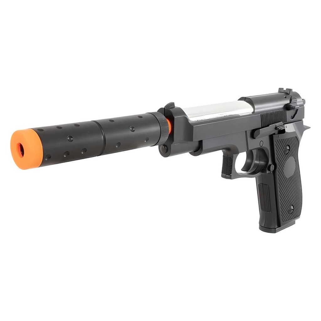 Pistola AirSoft Spring Beretta M22 6mm Preta - Double Eagle + Coldre + 2000 Esferas 0.12g