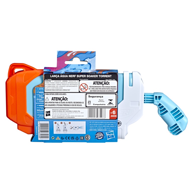 JATO D´ÁGUA PODEROSO: É possível lançar jatos poderosos de água com o lançador de água Nerf Super Soaker Torrent LANÇAMENTOS CARREGADOS: É só mirar e empurrar a alavanca de carregamento para frente para lançar um poderoso jato de água FÁCIL DE ENCHER: Fácil de lançar! Basta colocar a ponta do lançador na água e puxar o carregador para encher o reservatório. A capacidade do tanque é de 236 mL