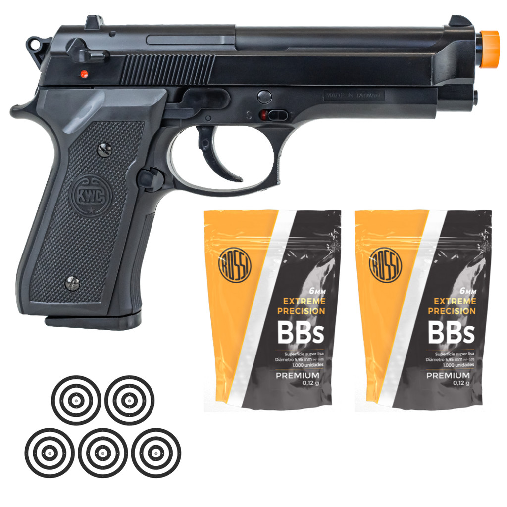 Pistola de Airsoft Beretta M92 KWC Spring 6mm Rossi + Escolha seu Kit