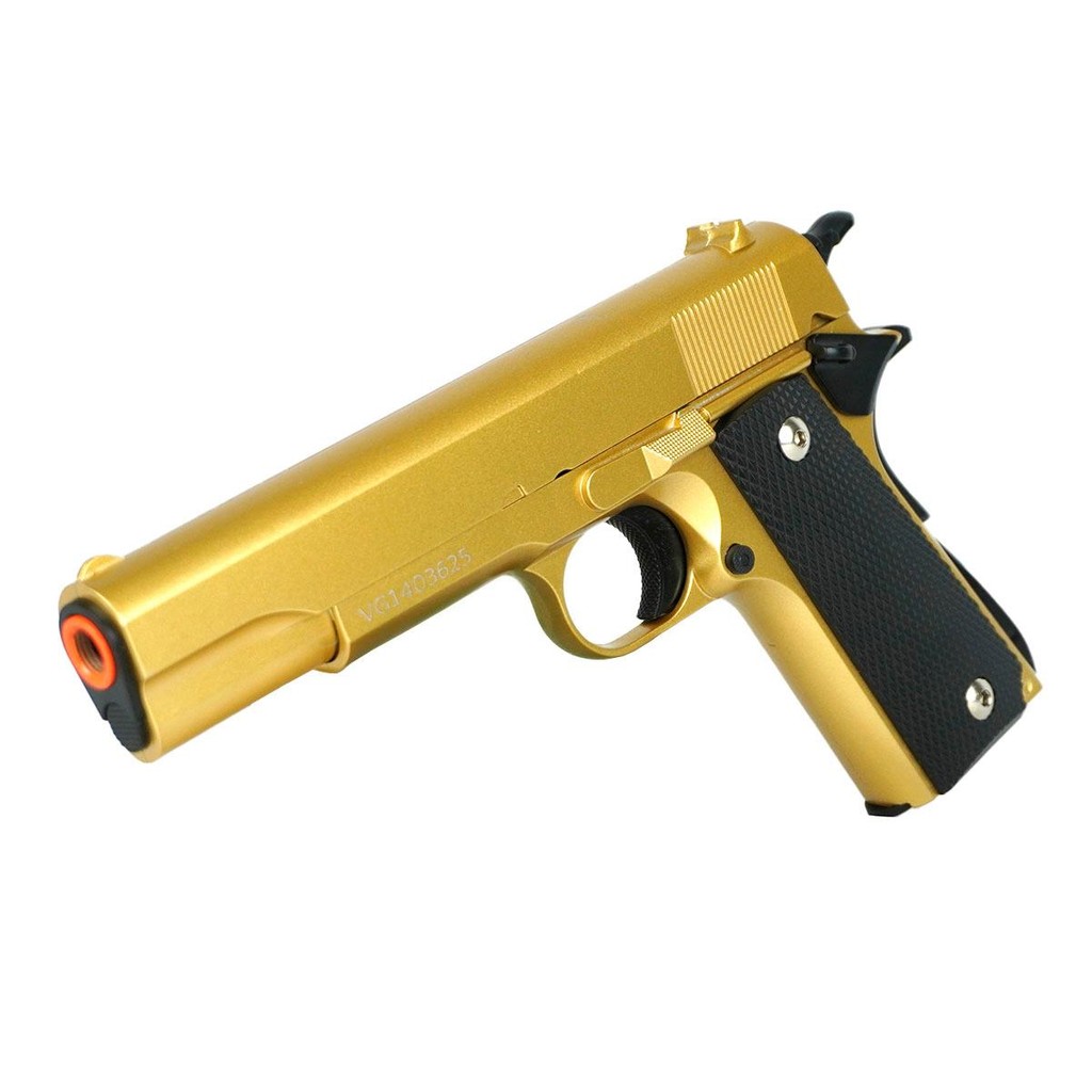 Pistola de Airsoft Spring VG 1911-V14 Gold 6mm – Rossi + Esferas + Coldre