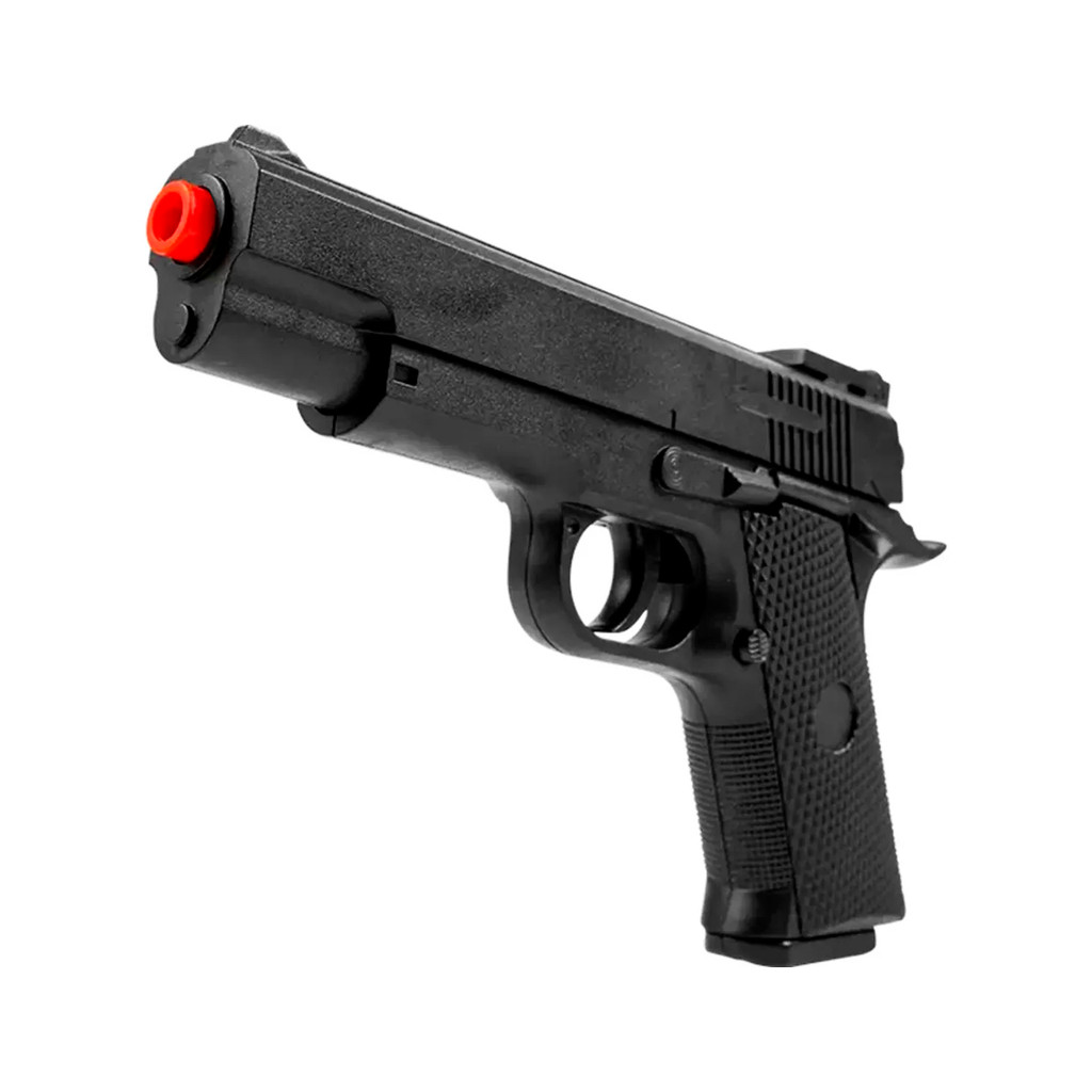 Pistola de Airsoft VG 1911 Short V92 Spring 6mm – Compacta, Leve e Eficiente (Rossi) A VG 1911 Short V92, da renomada Rossi, é a escolha perfeita para quem busca uma pistola de airsoft compacta, leve e com excelente custo-benefício. Inspirada na clássica plataforma 1911, ela alia design robusto com um toque moderno, ideal para iniciantes e treinos recreativos. Destaques do Modelo: -Modelo Spring (mola) – Disparo por repetição manual, sem necessidade de gás ou bateria. Econômica, prática e de fácil manutenção. -Velocidade de até 100 FPS – Ideal para tiros recreativos e práticas em alvos com precisão estável. -Magazine com capacidade para 12 BBs – Mais disparos antes da recarga, garantindo maior imersão e praticidade no uso. -Cano de 6,08mm – Melhora a vedação do ar, proporcionando disparos mais consistentes e eficientes. -Miras fixas – Alça e massa de mira auxiliam na visada e na precisão em alvos variados. -Leve e resistente – Fabricada em polímero de alta densidade, pesa apenas 105g, sendo fácil de transportar e manusear. Ficha Técnica: Marca: Rossi Modelo: VG 1911 Short V92 Calibre: 6mm Ação: Spring (mola) Velocidade: 100 FPS Capacidade do Magazine: 12 BBs Modo de disparo: Repetição manual Material: Polímero de alta densidade Miras: Alça e massa fixas Cano interno: 6,08mm Peso: 105g Comprimento: 197mm Ponta vermelha: Sim (conforme legislação)