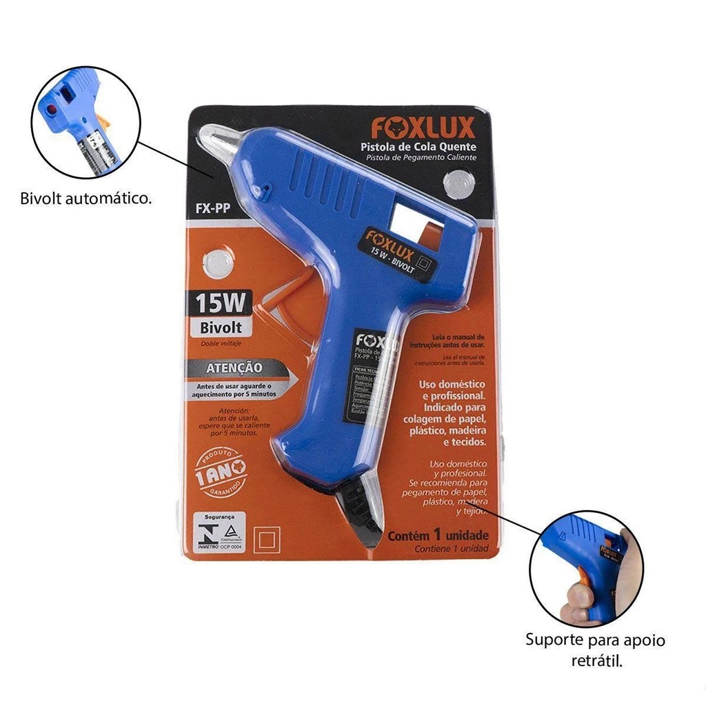 Pistola de Cola Foxlux 15W Bivolt | aquecimento rápido, prática e leve, aplicação precisa