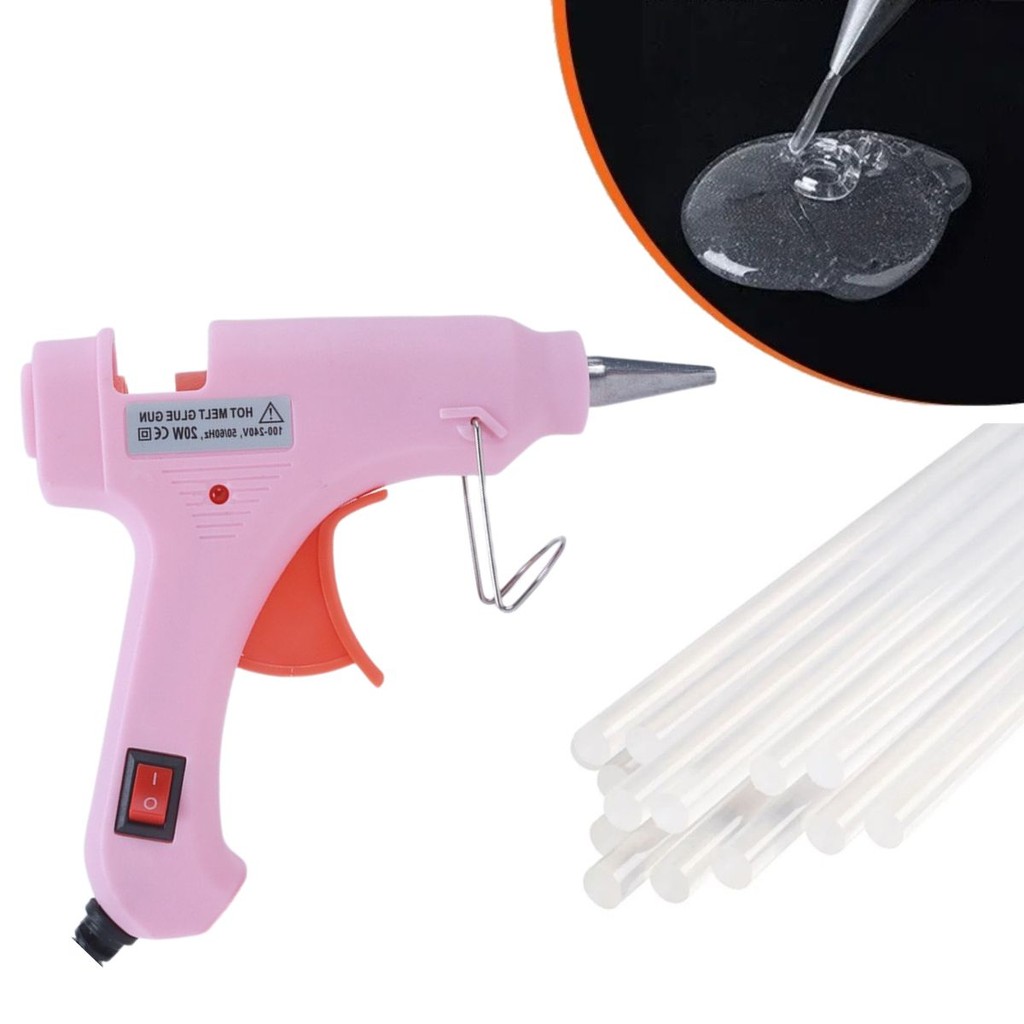 Pistola de Cola Quente Bico Fino Profissional Não Pinga 20W + 30 Bastões Botão LIGA/DESLIGA Bivolt