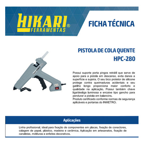 | Pistola De Cola Quente Profissional Hikari 280w Industrial este produto | R$ 131,40 | — | 5.0/5 | 4 |