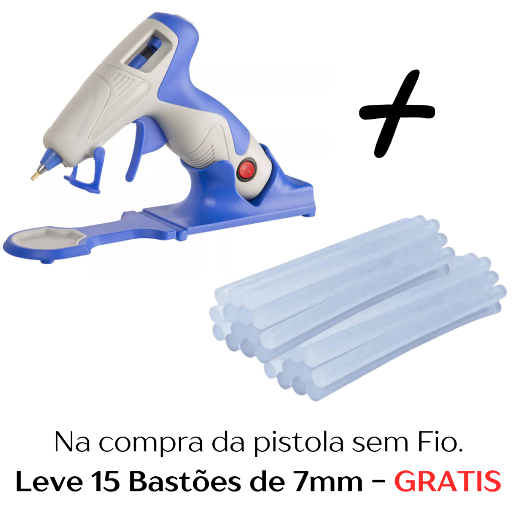 Pistola Cola Quente Sem Fio. Com 15x Bastões de 7 mm Gratis (Considerado como fino) Marca Artepunto é a ferramenta ideal para quem busca praticidade e eficiência em seus projetos de reparo e artesanato. - Ideal para Confecção, Artesanatos, Escolas, Papelarias, Projetos de Confecção Veja como funciona: - Pistola permite o uso retirando do fio ou base por até 3 minutos. - Facilitando a aplicação e manuseio. - Recomendação é assim que terminar de aplicar voltar para base para continuar o aquecimento. - Facilidade em não precisar ficar ligando em extensões. - Pode trabalhar retirando do suporte e aplicando ou direto no fio (Sem o suporte) **Atenção essa pistola não funciona com Pilhas ou baterias** **Não fica Luz acessa ao retirar do Suporte ou Fio** **Permanece por 03 minutos sem estar na base ou fio** - Facilidade por ser sem fio, agiliza o trabalho, e deixa de forma mais organizada (NÃO POSSUI PILHAS OU BATERIAS ELA FUNCIONA FORA DO SUPORTE POR ATÉ 3 MINUTOS) Seu design sem fio proporciona liberdade de movimento, tornando-a perfeita para uso em diferentes superfícies como MDF, madeira, papel, papelão, tecidos e isopor. Com um comprimento de 14 cm e um peso leve de 175 g, é fácil de manusear e transportar, ideal para quem precisa de uma solução versátil para estofados, restaurações e trabalhos escolares. A pistola utiliza bastões de cola de 7 mm, garantindo uma aplicação precisa e eficiente. Seja para pequenos reparos em casa ou projetos criativos, esta pistola de cola é uma adição valiosa ao seu kit de ferramentas, oferecendo resultados duradouros e de qualidade. Contém: 1 Pistola 1 Suporte 15x Bastões de Cola 7 mm Potência: 20W Bivolt: 110 - 220V - 50HZ / 60HZ Cabo de 1,80 Metros Produto com Selo do Inmetro Atenção: - A LUZ SÓ FUNCIONA QUANDO ESTÁ NO CABO OU NA BASE. - NÃO TEM BATERIA, FUNCIONA FORA DA BASE POR ATÉ 3 MINUTOS. - Tempo de Uso Sem Fio: Cerca de 3 Minutos - Luz de Precisão - Tempo de Manuseio sem Alimentação: Aproximadamente 3 Minutos As pistolas de cola quente são ideais para aplicação em: - Tecido - Madeira - Vidro - Plástico - Metal - Cerâmica Cuidado: Não toque no Bico do Aparelho, temperatura elevada! Mantenha fora do alcance de crianças.