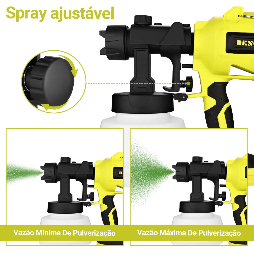 Pistola De Pintura 1200W Profissional HVLP Pulverizadora 1000ml 32000rpm Com 4 Bico de Cobre Puro Desoon