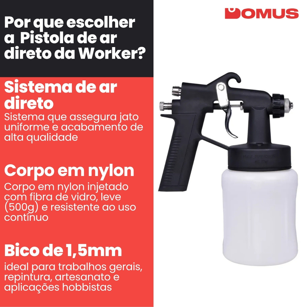 Pistola de Pintura Ar Direto 1,5mm 700ml Nylon 40 PSI Worker