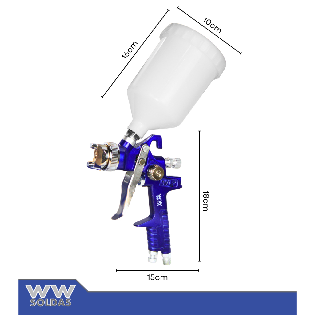 Pistola de Pintura HVLP Modelo W827 - Permita a seus trabalhos perfeito acabamento, com baixo consumo de ar e economia de tinta. - Bico 1,4mm - Não temos bico extra ou em tamanho diferente - Peças de reposição encontradas, facilmente em assistências e lojas do ramo. - Corpo forjado de alta resistência - Caneca com 600 ml em PVC especial - Com o melhor custo benefício em pistola - Regulagem e cobertura de leque perfeito - Gatilho leve, regulagens macias e tudo durável - Ergonômica, proporciona conforto ao operador - Consumo de ar entre 10 pés cúbicos/minuto - Cobertura perfeita e uniforme das peças pintadas - Trabalha com 30 a no máximo 50 libras de pressão - Baixo consumo de ar com alta produção de pintura - Trabalha com qualquer tipo de compressor acima de 6 pés - Regulagem de abertura e fechamento de leque muito durável - Capa de ar, Bico e Agulha fabricados com material de primeira - Cromada para fácil limpeza, aparência de nova por muito tempo - No primeiro aperto libera apenas ar - No aperto mais forte libera a tinta, duplo estágio Acompanha: - Peneirinha para tinta - 8 furos na base que abrem o leque - 6 furos no bico que estabilizam o leque - 15 furos na capa que organizam todo ar que sai Dimensões: - Altura 35 cm - Largura 10 cm - Comprimento 16 cm - Peso: 650 gramas Envio imediato Entrega garantida Produto em estoque Compre com 100% de segurança Garantia de 03 meses contra defeitos de fabricação