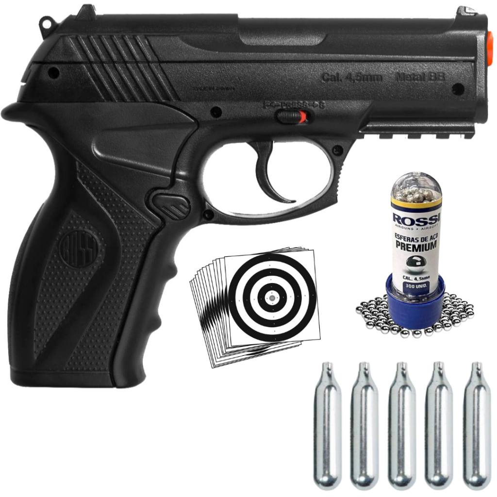 Pistola de Pressão Rossi C11/R11 4,5mm + Esferas 4,5mm + CO2 Rossi + Alvo Rossi