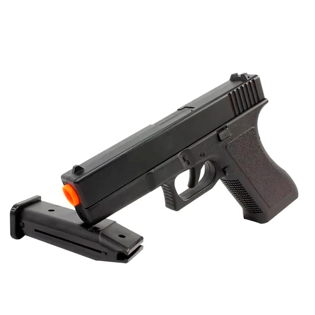 Pistola de Airsoft VG GK-V500 Slide Metal Mola 6mm – Custo-benefício e Realismo na Medida Certa! Se você está procurando uma pistola de airsoft com excelente custo-benefício, a VG GK-V500 Slide Metal é a escolha ideal. Fabricada com foco em resistência, desempenho e realismo, essa pistola da Rossi é perfeita tanto para iniciantes quanto para praticantes mais experientes do airsoft. Destaques do Modelo: -Slide em Metal – Garante maior realismo e robustez, além de adicionar um peso equilibrado à arma, tornando o manuseio mais confortável e preciso. -Magazine com capacidade para 11 BBs – Mais disparos antes da recarga, ideal para partidas rápidas e treinos de tiro. -Funcionamento por mola (spring) – Disparo manual por repetição, sendo necessário engatilhar a cada tiro. Simples, confiável e com excelente durabilidade. -Velocidade de disparo – Aproximadamente 150 FPS (45 m/s) com BBs de 0.20g, ideal para práticas recreativas com segurança e controle. -Miras fixas em polímero – Alça e massa de mira que auxiliam na precisão durante os disparos a curta e média distância. -Construção resistente – Corpo em polímero de alta densidade, oferecendo leveza sem abrir mão da durabilidade. O grip texturizado proporciona uma pegada firme e segura. Resumo Técnico: Modelo: VG GK-V500 Calibre: 6mm Tipo de ação: Mola (spring) Velocidade: ~150 FPS (com BBs 0.20g) Capacidade do magazine: 11 BBs Material: Corpo em polímero e slide em metal Modo de disparo: Manual por repetição