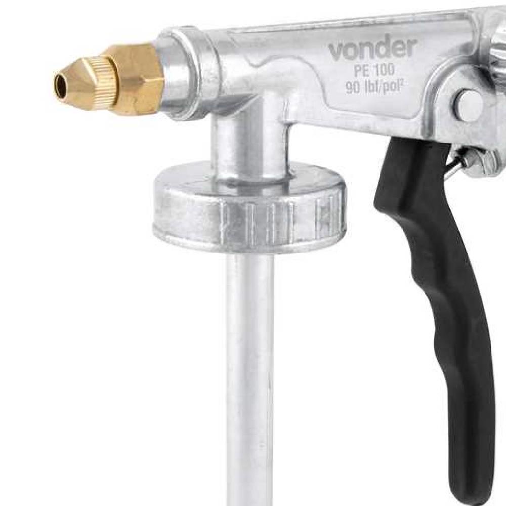 Pistola para emborrachamento de Alumínio VONDER Conteúdo da Embalagem: 1 Pistola para emborrachamento. Possui corpo em alumínio, proporcionando maior durabilidade e resistência. Conta ainda com regulagem de saída de ar e formato ergonômico, fornecendo maior conforto na operação. Indicada para aplicação de emborrachamento em funilarias. Também pode ser utilizada na aplicação de líquidos com maior viscosidade. Detalhes Técnicos: Consumo de ar da pistola:4 pcm (pé³/min) Pressão de trabalho:90 lbf/pol² Material do corpo da pistola:Alumínio Rosca de entrada de ar:Engate rápido de 1/4" Tipo de bico:Flexível Comprimento da haste (pescador):220 mm Massa aproximada (peso):0,35 kg Garantia: 3 meses Referência: 6220000001 Marca: VONDER *Imagens meramente ilustrativas.