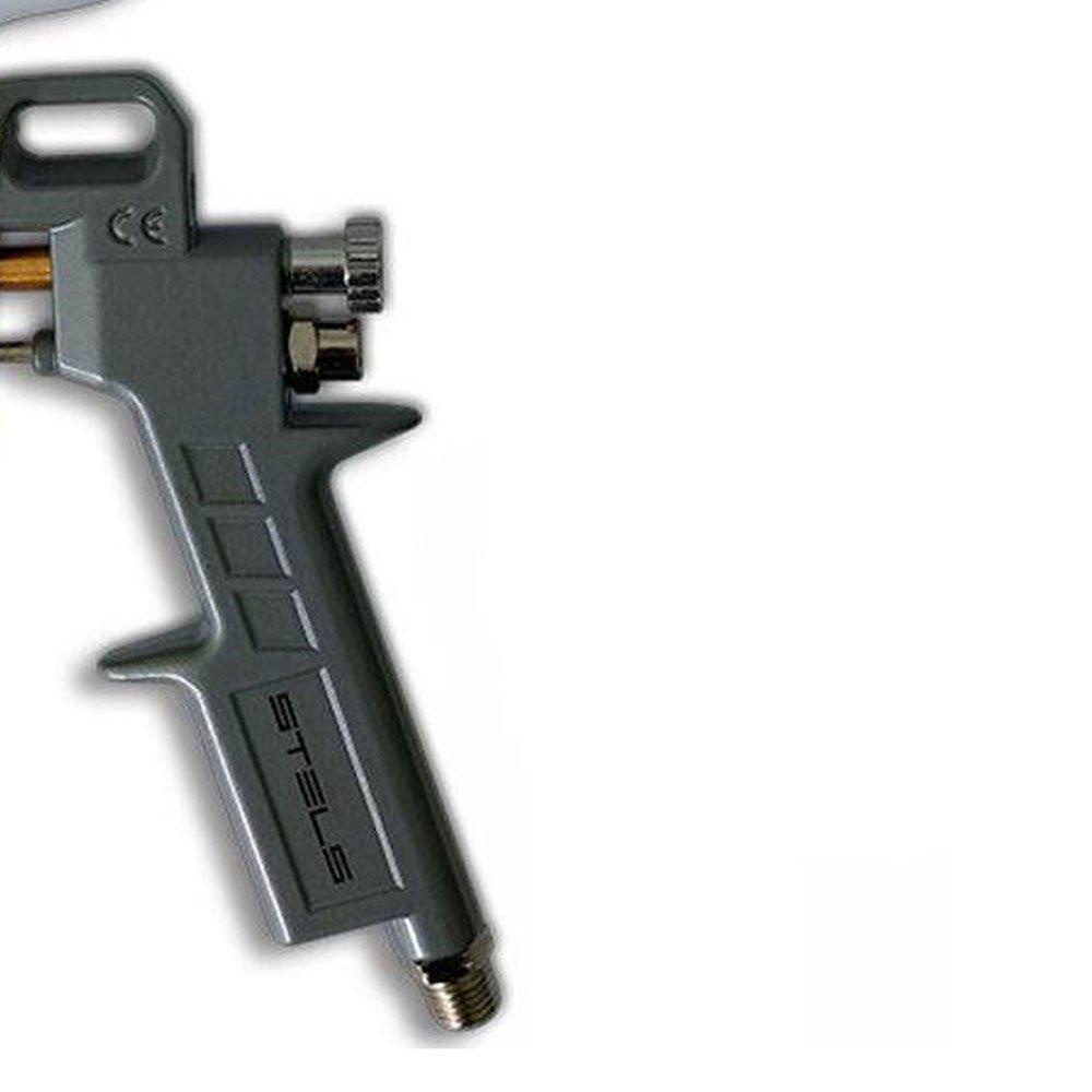 Pistola de pintura pneumática com tanque alto e alimentação por gravidade é indicada para aplicação protetora em diversas superfícies, como: plástico, metal, madeira e cerâmica. Produzida em liga de alumínio fundido, conta com sistema de regulação, circulação de ar e pressão. Ideal para a realização de trabalhos internos e externos, em oficinas de reparação de automóveis. - Pistola de pintura com tanque alto - Ajuste da vazão do ar e da tinta - Alimentação por gravidade - Especificações Técnicas: :: Pressão máxima: 3 4 ATM :: Consumo: 75 230 L/min :: Volume do tanque: 600ml :: Acompanha 03 bicos :: Diâmetro dos bicos: 1,2 1,5 1,8mm :: Peso: 520g :: Tanque alto :: Encaixe rosca de 1/4" NPT - Garantia: 3 meses - Marca: STELS
