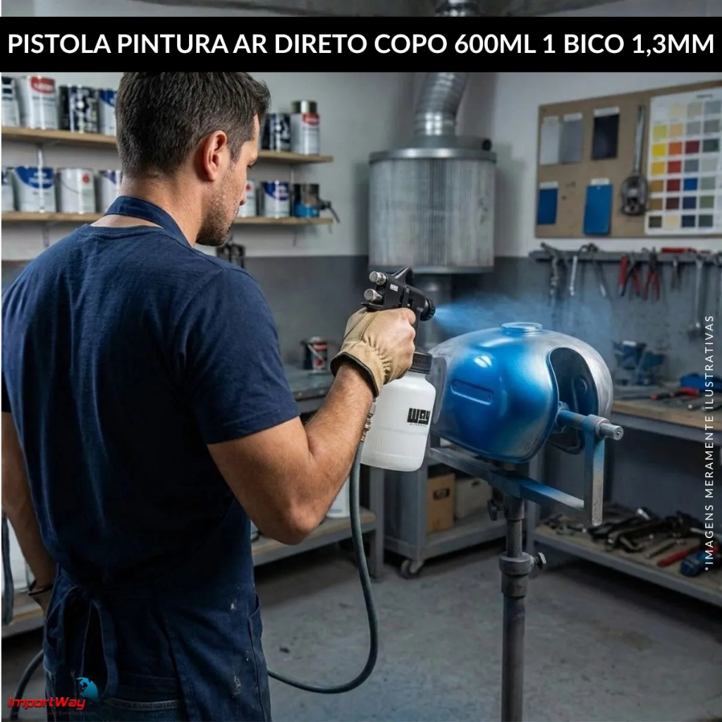 Pistola Pintura Ar Direto Copo 600ml 3 Bicos 1,3mm Limpeza