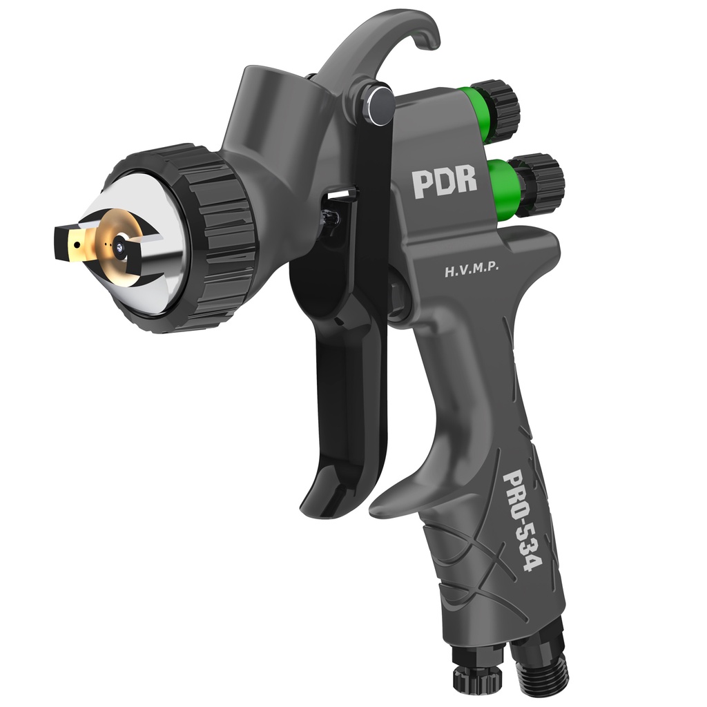 Pistola de Pintura HVMP PRO-534B Bico 1,7mm Reservatório 600ml PDR Indicada para pinturas automotivas, Top Coata (Tintas base, acabamentos, efeito metálico e vernizes), Primer (fundo), moveleiros e pinturas em geral. Juntamos a melhor característica das pistolas H.V.L.P. com a melhor da L.V.M.P H.V. = Alto volume M.P. = Média pressão Tornando assim uma nova tecnologia que vai revolucionar o seguimento de pintura automotiva Acessórios Incluso: - 01 Copo de Plástico 600ml - 01 Chave Múltipla - 01 Escova para Limpeza Referencia 0412 - Modelo: PRO-534B - Marca: PDR - Tipo: Pistola H.V.M.P - Sistema: Gravidade - Bico: 1,7mm - Volume do Copo: 600ml - Pressão de Trabalho: 3,5bar / 50psi - Pressão Máxima: 4,5bar / 64psi - Largura do Leque: 24 a 27cm - Distância Ideal: 20cm - Entrada de Ar: 1/4 - Consumo de Ar Médio: 9 a 10pcm - Embalagem: Caixa de Papelão Colorida - Garantia: 90 dias DIMENSÕES MONTADA: Peso: 520g Altura: 32cm Largura: 11m Comprimento: 14,5cm DIMENSÕES DA EMBALAGEM: Peso: 720g Altura: 13cm Largura: 15m Comprimento: 23cm