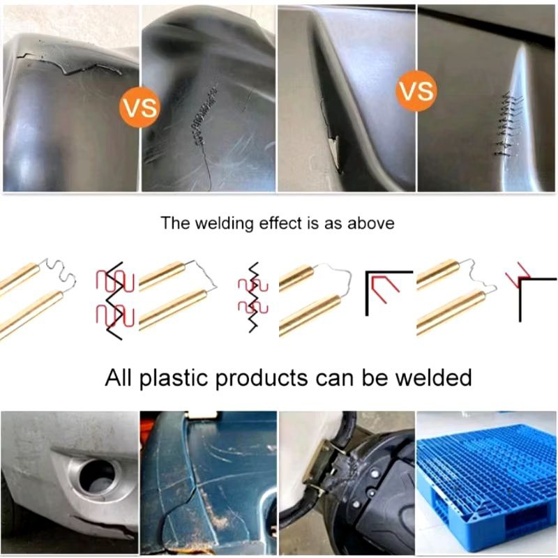 Kit Pistola Para Soldar Para-Choques Plásticos + 200 Grampos Profissional Pistola perfeita para consertar peças do seu carro ou coisa de casa. Pode ser usado em Para-Choque ou qualquer material de polipropileno com espessura maior que 1,2 mm Aplicação em: - Para-choques- Outras partes automotivas de plástico- Peças Industriais de Plástico- Sendo plástico é possível fazer a costura Especificações Técnicas:- Aplicação rápida e fácil.- Corrente de entrada: 0.5A- Tensão de saída: 0-50v - Corrente de saída: 0-15A- Potência de saída: 0-50w- Proteção contra superaquecimento- Grampo de aço inoxidável não enferruja.- Medidas da máquina: 22,5x15,5x40cmConteúdo da Embalagem:- 01 Maleta- 01 Máquina de soldadura de plásticos- 50 Grampos onda grande-50 Grampo de canto externo M-50 Grampo de canto interno V-50 Grampo onda pequena