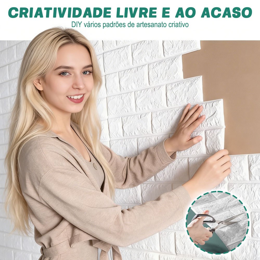 Parede com cara de nova em minutos, sem obra e sem sujeira. Efeito 3D tijolinho branco que transforma o ambiente na hora. ⭐ PRINCIPAIS BENEFÍCIOS (bullets que vendem) Efeito 3D tijolinho: visual moderno e elegante Autocolante: é só destacar e colar (instalação rápida) Espuma PE (Polietileno): leve, prática e com ótimo acabamento Fácil de limpar: pano úmido + detergente neutro Excelente custo-benefício: renova sem gastar com obra/mão de obra Ideal para decoração e reforma rápida em ambientes secos DESCRIÇÃO COMPLETA (SEO + conversão) Transforme paredes e tetos com o Kit de 10 Placas 3D Adesivas Tijolinho Branco, perfeito para quem quer um acabamento bonito e atual sem passar por reforma. O revestimento autocolante facilita a instalação e o efeito 3D cria profundidade e um visual premium no ambiente. Rendimento aproximado do kit: 5,39 m² (cada placa cobre ~0,539 m²: 0,77 x 0,70) Use em sala, quarto, corredor, escritório, recepção, loja e outros ambientes secos para um “antes e depois” imediato. Compre agora e renove hoje mesmo. ESPECIFICAÇÕES TÉCNICAS (SEO) Produto: Placa adesiva 3D (efeito tijolinho) Composição: Espuma de Polietileno (PE) Cor: Branco Tamanho por placa: 77 cm (comprimento) x 70 cm (largura) Espessura: 3 mm Peso por placa: 100 g Conteúdo da embalagem: Kit com 10 placas 3D adesivas ️ COMO APLICAR (passo a passo rápido) Limpe a superfície (sem poeira, gordura e umidade) Meça e alinhe antes de colar Retire o filme protetor aos poucos Pressione do centro para as bordas Ajuste recortes com estilete/tesoura ️ IMPORTANTE (reduz devolução e aumenta avaliação) Melhor resultado em superfícies lisas e secas (parede pintada lisa, MDF, vidro, cerâmica lisa) Evite aplicar em: parede úmida, mofo/infiltração, textura grossa, reboco solto Cores podem variar levemente conforme a tela do celular/monitor