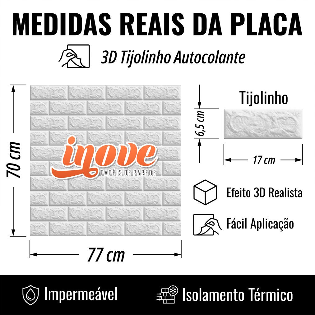 Características 1 Placa - Medidas: 77 cm A x 70cm L - Acaba com tetos e paredes velhas, feias, descascadas, riscadas, manchadas,etc.. - Fácil de instalar, Auto Colantes (Qualidade de fixação garantida!). - Fácil de limpar, permite o uso de um pano com detergente para limpeza - Revestimento durável - Excelente custo-benefício, não existe nada igual no mercado. - Economiza o seu tempo (A instalação pode demorar poucos minutos dependendo do tamanho do espaço.)