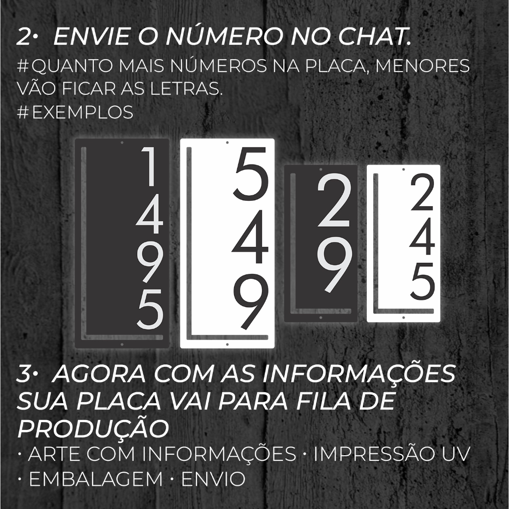 📌 Placa de Número Residencial Personalizada em Acrílico – Ideal para Casa, Loja, Empresa ou Galpão 🛠️ Personalize o endereço da sua fachada com estilo e modernidade! Nossa placa de acrílico personalizada é perfeita para quem busca uma solução durável, elegante e sob medida para identificação de número residencial ou comercial. ✨ Produzida com material de alta qualidade e acabamento em corte a laser, garante sofisticação e excelente visibilidade. 📋 Detalhes do Produto: 📏 Tamanho: 30 x 14 cm 📏 Tamanho: 40 x 18 cm 💎 Material: Acrílico de alto padrão com números em impressão UV. ✂️ Corte: Feito a laser para máxima precisão e acabamento profissional 🧼 Fácil de limpar e ideal para uso externo (resistente ao sol e chuva) ✍️ Como Personalizar? Após a compra, envie pelo chat o número da casa para produzirmos a sua placa com total precisão. ⚠️ ATENÇÃO: A personalização só será iniciada após o envio dessas informações! Caso o cliente não envie os dados até 1 dia antes do envio, será utilizada a informação de endereço presente no pedido. Não fazemos outros tamanhos personalizados. As placas são pré-cortadas e seguem exclusivamente os tamanhos descritos no anúncio. 🧰 Como Instalar? Prepare a superfície (limpa e seca) Fixe com cola, parafusos ou outro método de sua preferência 🔧 A fixação é simples, e você escolhe o melhor método conforme seu ambiente! ❓ Perguntas Frequentes: 1. A placa já vem com fixador? ❌ Não. Você pode usar cola, parafusos ou fita, conforme sua preferência. 2. O que preciso enviar após a compra? 📨 O número da casa pelo chat da plataforma. 3. A placa é resistente ao tempo? ☀️🌧️ Sim! O acrílico é resistente à exposição solar e à umidade. 4. Qual o prazo de envio? 📦 A produção começa após o recebimento dos dados e o envio é rápido! 5. Posso pedir outros tamanhos ou cores? 💬 Fale conosco! Podemos avaliar opções personalizadas sob demanda. 🚨 Produção Limitada por Dia! Produzimos sob encomenda, com atenção a cada detalhe. Aproveite enquanto estamos com capacidade de produção disponível! 💬 Atendimento rápido e humanizado pelo chat! Estamos prontos para tirar dúvidas e garantir sua satisfação. 🛒 Clique em "Comprar agora" e leve mais organização e elegância para sua fachada! ✅ Exclusiva. Moderna. Feita especialmente para você.