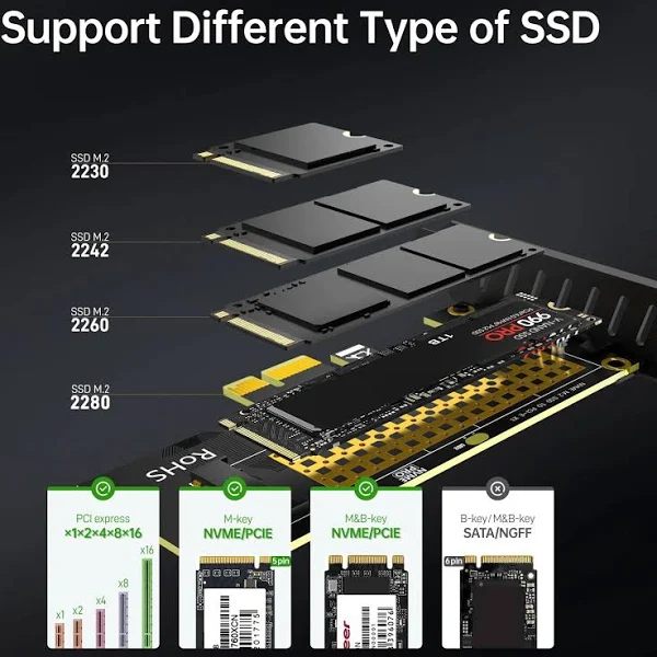 ⚡ Velocidade total PCI Express Gen4 16Gbps: Aproveite velocidades de transferência de dados extremamente rápidas com o recurso PCI Express Gen4, que oferece até 16Gbps de velocidade. 🔧 Cartão Adaptador M.2 NVME SSD para PCIE x1: Converta o SSD M.2 NVME do seu PC desktop em uma placa adaptadora PCIE x1 com este adaptador prático. 💾 2280 SSD PCIe 3.0/4.0 Cartão de Expansão: Expanda a capacidade de armazenamento do seu desktop com esta placa de expansão compatível com SSDs 2280 PCIe 3.0 e 4.0. 🖥️ Compatível com PCs Desktop: Projetado especificamente para funcionar com PCs desktop, garantindo compatibilidade e desempenho ideal. 💡 JEYI M.2 NVMe SSD PCI-E 4.0 X1 Adaptador: Este adaptador permite adicionar um SSD NVME à sua placa-mãe, mesmo que não tenha um slot M.2. Com o canal PCI-E 4.0 X1, a velocidade pode chegar a até 16Gbps, proporcionando 1600+ MB/s de leitura aleatória e 1600+ MB/s de gravação (máx), otimizando o desempenho do seu computador. Compatível com PCIe 1.0, 2.0 e 3.0. 🚀 Plug and Play: Não é necessário instalar drivers para Windows 10 e 11, basta conectar e usar. Suporta todos os SSDs M.2 NVMe. 📦 O pacote inclui: • 1 Adaptador • 1 Perfil • 1 Parafuso do gabinete • 1 Parafuso SSD • 1 Chave de fenda
