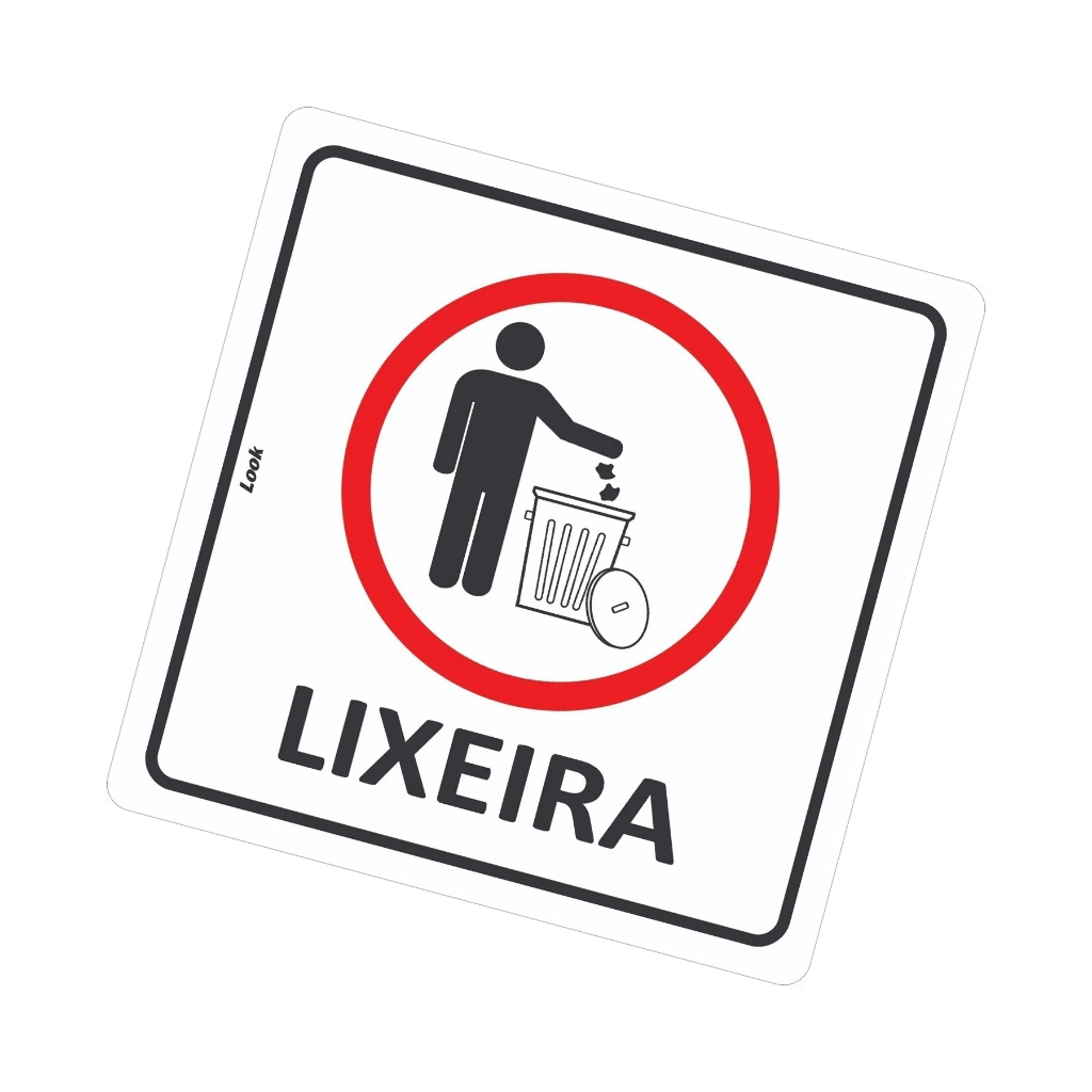 Placa Aviso Lixeira Jogue Lixo no Cesto Limpeza Higiene Tamanho 15x15cm Look Placas de Sinalização