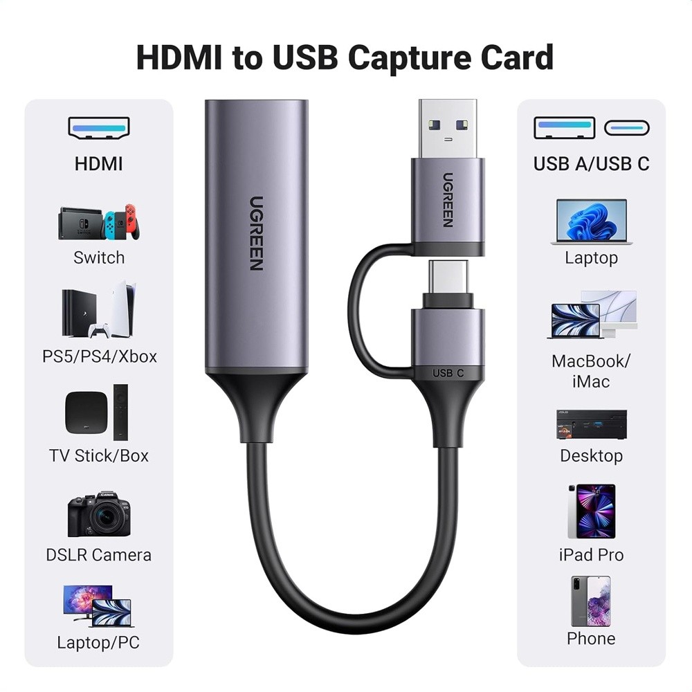 Placa Captura Ugreen Usb A/C 1080 60Fp Hdmi 4k30Hz Preto