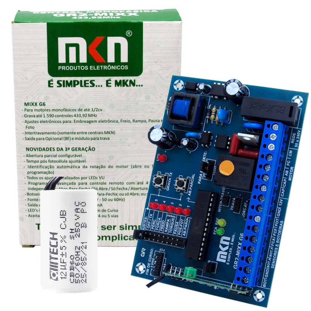 Placa Central Mkn Gr2 Mix Universal Motor Portão Com Capacitor 12uf