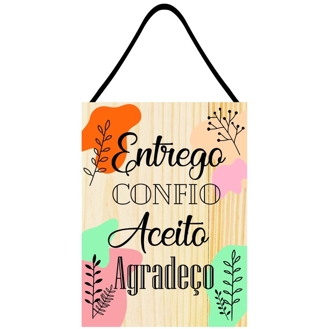 | Placa com Alça de Couro Entrego Confio Aceito e Agradeço 14x29cm este produto | R$ 18,68 | — | 4.9/5 | 3 |