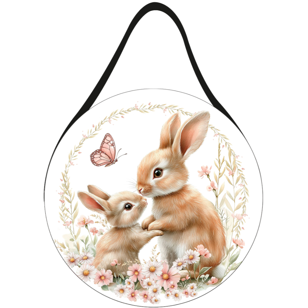 Placa com Alça de Couro Redonda 20x20cm Páscoa Amor de Mãe