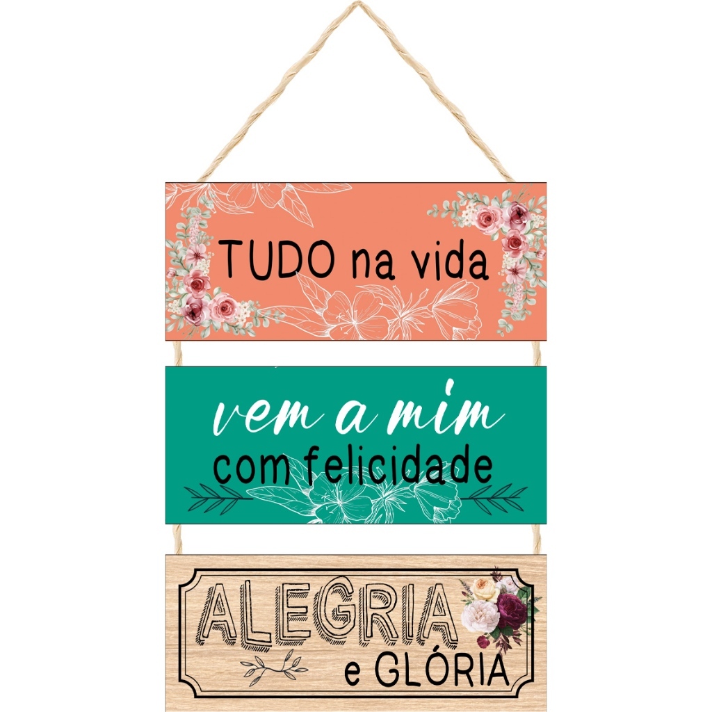 | Placa com Alça de Sisal 3 Peças Decoração TUDO Na Vida Vem a Mim co... este produto | R$ 19,98 | — | 5.0/5 | 2 |