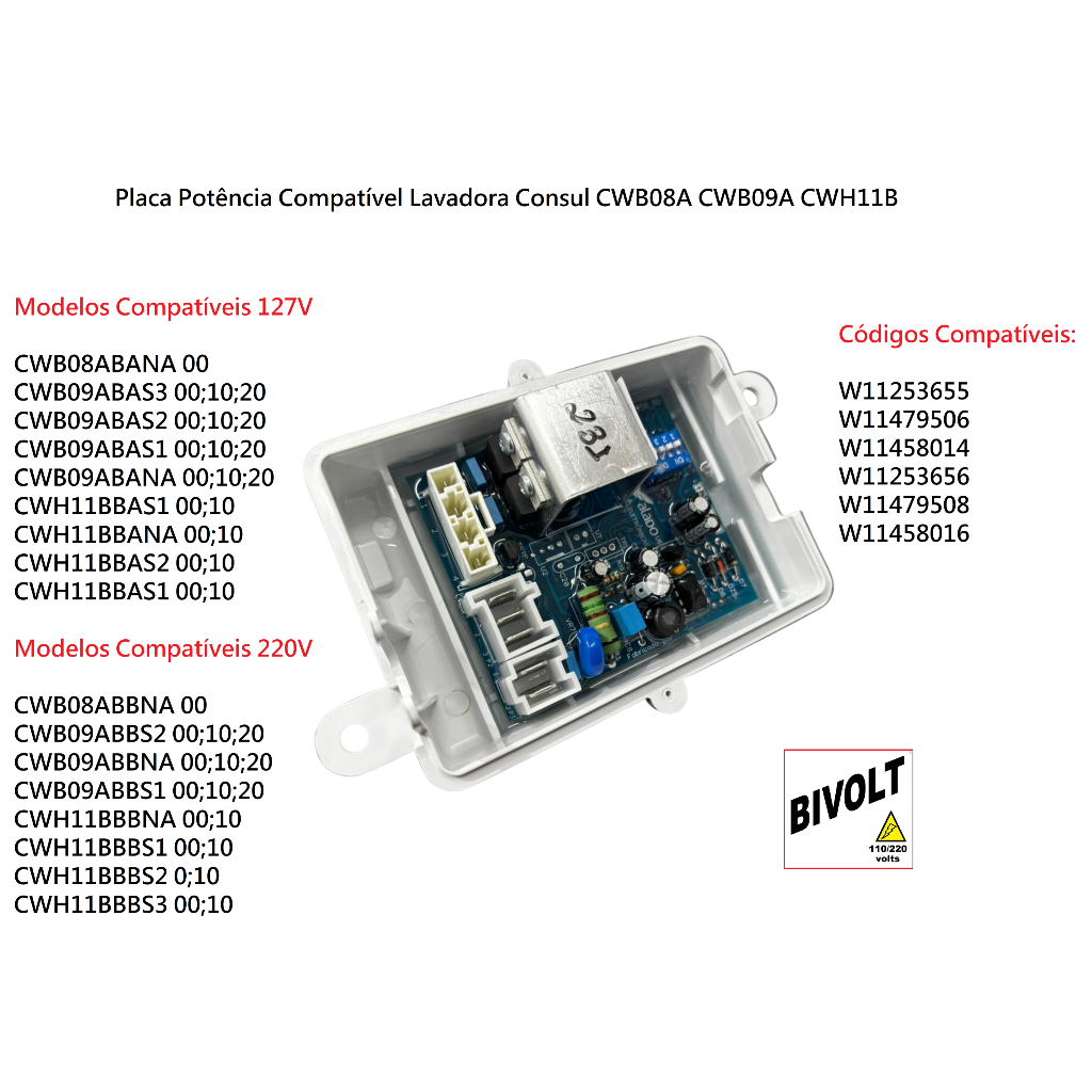 Placa Compatível Lavadora Consul Cwb08a Cwb09a Cwh11b Alado W11479506 W11479508