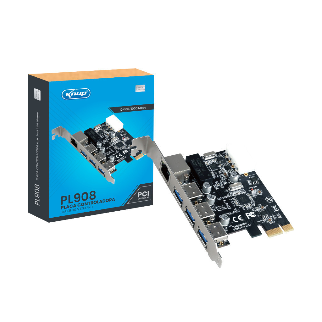 Placa Controladora 3 x Usb 3.0 Pci Express 10/100/1000 Mbps KP-PL908