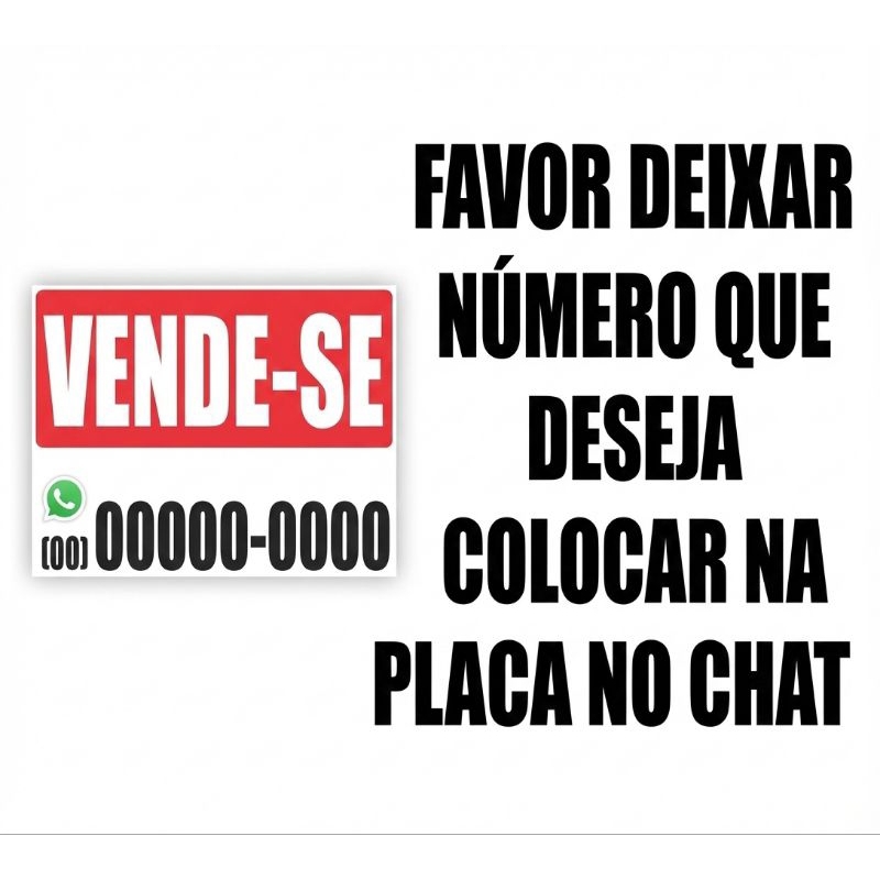 *** DEIXAR O NÚMERO QUE DESEJA COLOCAR NA PLACA NO CHAT OU NO CAMPO DE OBSERVAÇÃO *** Placa Aluga-se em MDF – Destaque seu Imóvel e Alugue Mais Rápido! 🏠✨ Está com dificuldade para alugar seu imóvel? A sinalização correta é o primeiro passo para fechar negócio! Nossa placa em MDF "Aluga-se" foi desenvolvida para oferecer máxima visibilidade e um acabamento profissional, muito superior às placas de plástico comuns. Com design chamativo em vermelho e branco e o logo do WhatsApp em destaque, você facilita o contato imediato dos interessados. ✅ POR QUE ESCOLHER NOSSA PLACA? Material de Qualidade: Feita em MDF de [inserir espessura, ex: 3mm], garantindo rigidez e durabilidade (ideal para áreas internas ou locais cobertos). Alta Visibilidade: Cores vivas e impressão de alta resolução que chamam a atenção de quem passa na rua. Pronta para Uso: Espaço em branco estratégico para você escrever seu telefone/WhatsApp com facilidade (pode usar caneta permanente ou adesivos numéricos). Logo WhatsApp: Mostra que você é moderno e facilita a comunicação rápida. 📏 ESPECIFICAÇÕES TÉCNICAS: Material: Madeira MDF 3mm Medidas: 13x19 cm 20x30 cm 30x50cm 40x60cm Fixação: Acompanha fita dupla face 3M atrás 📦 O QUE VEM NA EMBALAGEM: 01 Placa "Aluga-se" em MDF Garanta já a sua placa e acelere a locação do seu imóvel! Envio imediato para todo o Brasil. 🚚💨