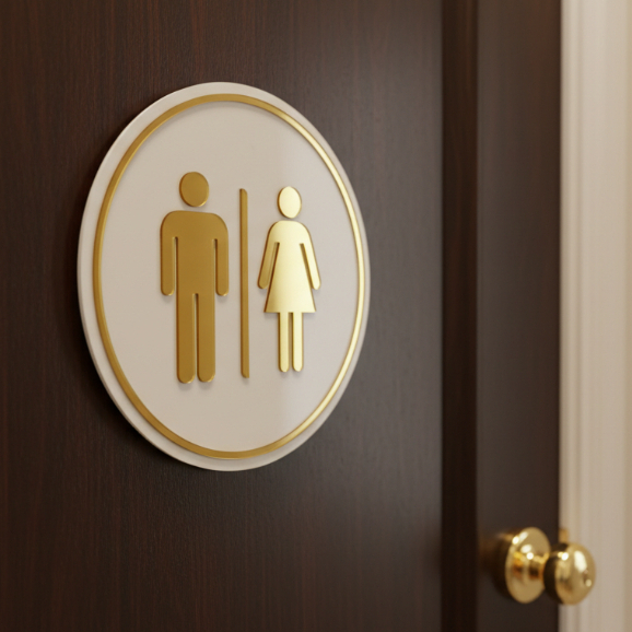 Placa de Banheiro Circular em Acrílico Placa de porta 15x15cm