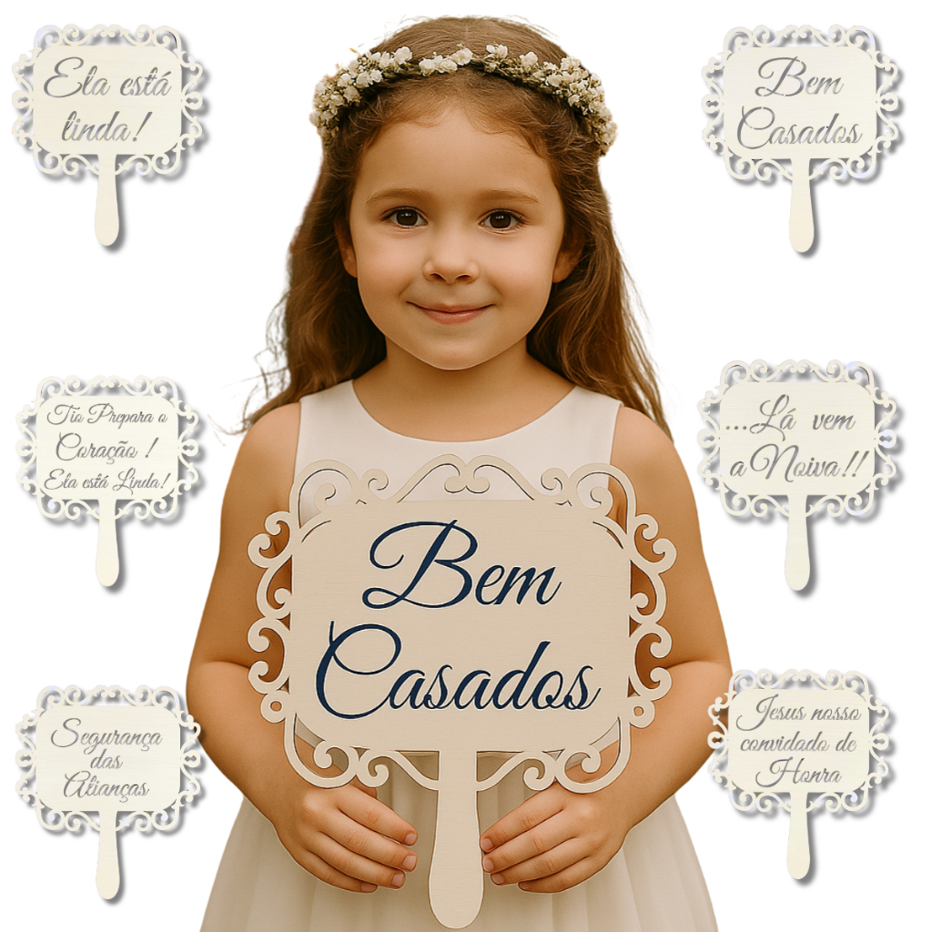 Placa Decorativa MDF Casamento Ideal para Cerimônias Românticas e Inesquecíveis! Deixe o momento mais especial do casamento ainda mais encantador com esta linda, Placa Decorativa em MDF. Ideal para ser carregada por crianças (daminhas e pajens) na entrada da cerimônia, garantindo um toque delicado, elegante e cheio de emoção ao grande momento. Com design exclusivo, a peça possui detalhes rendados em corte a laser e acabamento sofisticado que combina com qualquer estilo de decoração de casamento. Características do Produto: - Material: MDF de alta qualidade, resistente e leve - Pintura: Tinta em Gel Branca De Alta Qualidade - Detalhes: Corte a laser com arabescos delicados nas bordas - Fácil de segurar - Enviado pronto para uso Dimensões Aproximadas: - Altura: 30 cm - Largura: 26 cm - Espessura MDF: 3 mm Benefícios do Produto: - Ideal para entrada da noiva em cerimônias de casamento - Perfeito para daminhas e pajens carregarem - Detalhes finos e sofisticados em corte a laser - Produto leve, prático e resistente - Ótima opção para fotos decorativas - Produto artesanal com acabamento impecável Indicações de Uso: - Cerimônia de Casamento - Entrada da Noiva - Ensaio Fotográfico Pré-Wedding - Decoração de Chá de Panela ou Chá de Casa Nova - Lembrança especial do casamento Envio Seguro para todo o Brasil! Produto embalado com total proteção para chegar perfeito até você. Mdf Store