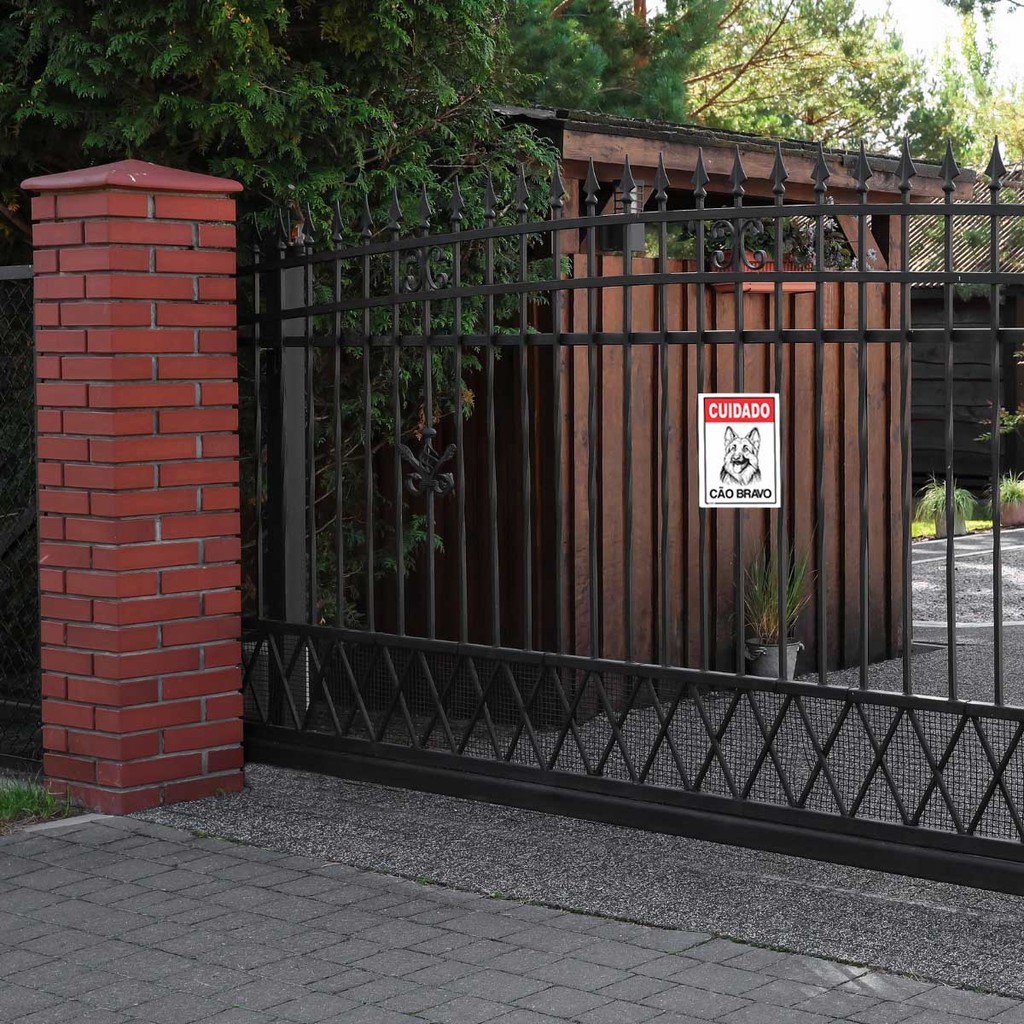 1 Placa "Cuidado Cão Bravo" – 20 x 30 cm Cuidado Cão Bravo Placa de aviso com mensagem direta para alertar sobre a presença de animal de guarda. Reforça a segurança, previne acessos indevidos e protege pessoas e propriedades. Produzida em Poliestireno (PS) 1mm, é leve, resistente e de fácil instalação. Destaques do Produto: Tamanho: 20 x 30 cm Material: PS 1mm com impressão em silk screen, garantindo excelente durabilidade e nitidez Aplicação Simples: Acompanha fita dupla face de alta fixação Visual Profissional: Cores vivas e de fácil leitura, mesmo à distância e em diferentes horários do dia Resistente à água e umidade: Pode ser usada em áreas internas e externas Instalação Flexível:Fixe com a fita inclusa, parafusos ou abraçadeiras, conforme a necessidade. Conteúdo da embalagem:1 placa + 1 conjunto de fita dupla face