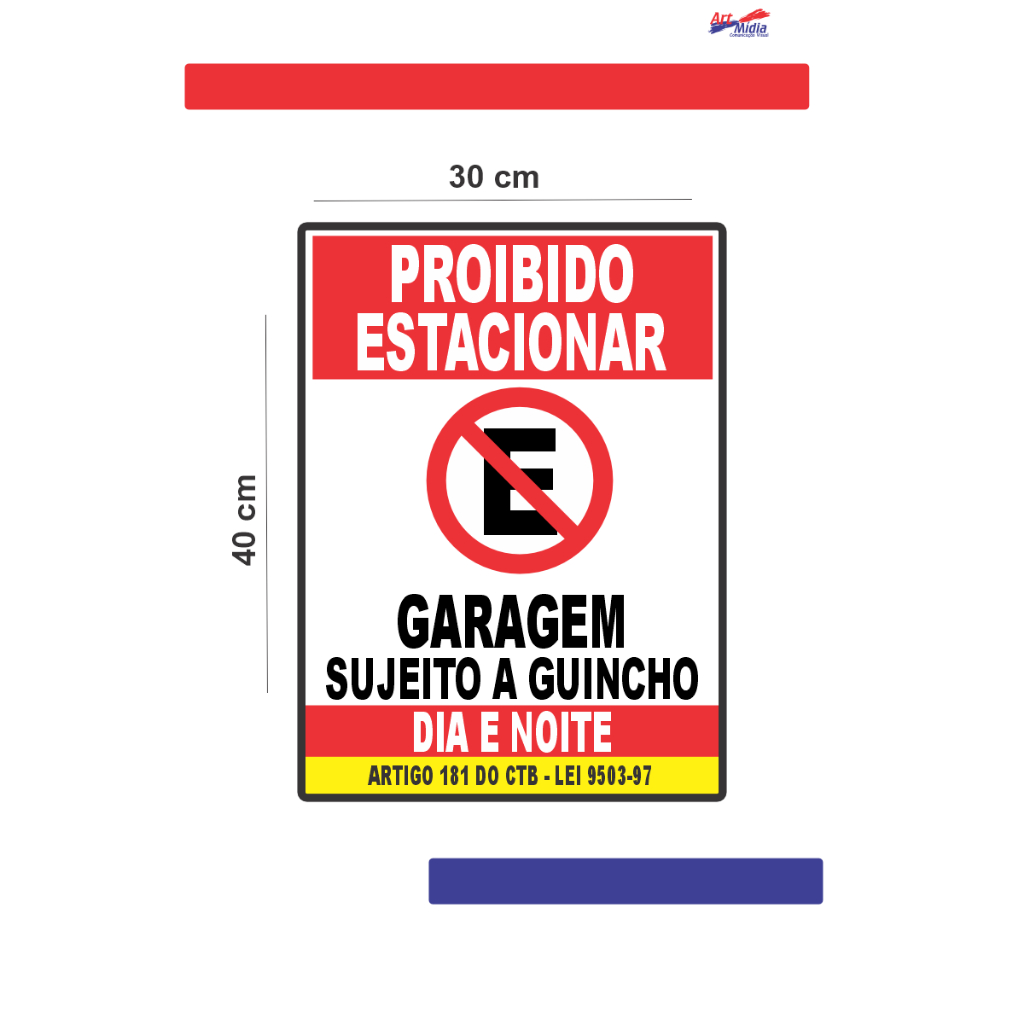Placa de Sinalizaçao Proibido Estacionar Garagem Grande Dia E Noite Com Lei 40x30cm Resistente