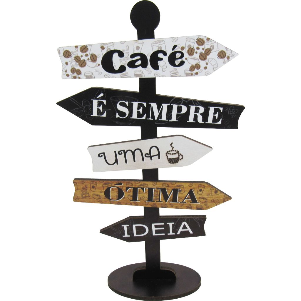Placa Decorativa De Mesa Seta Direção Café é Sempre Uma Ótima Ideia Mdf
