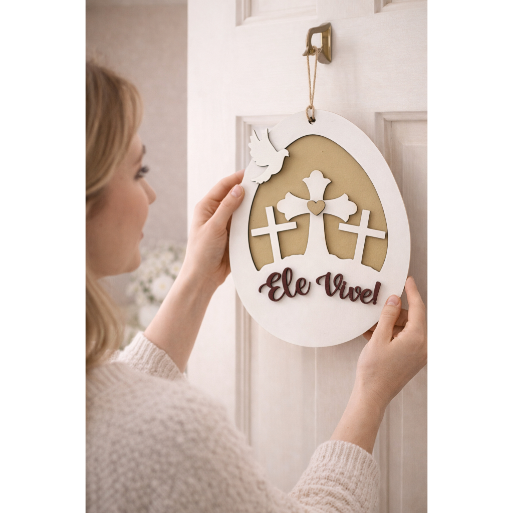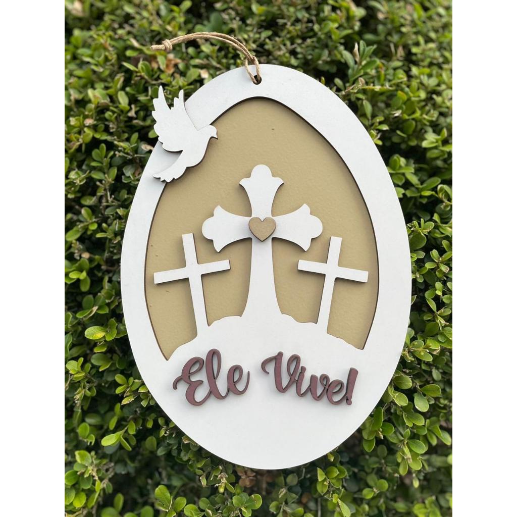 Placa decorativa Ele Vive Páscoa Cristã/Enfeite para Porta Decoração de Casa/escapulário 22cm altura/6mm espessura