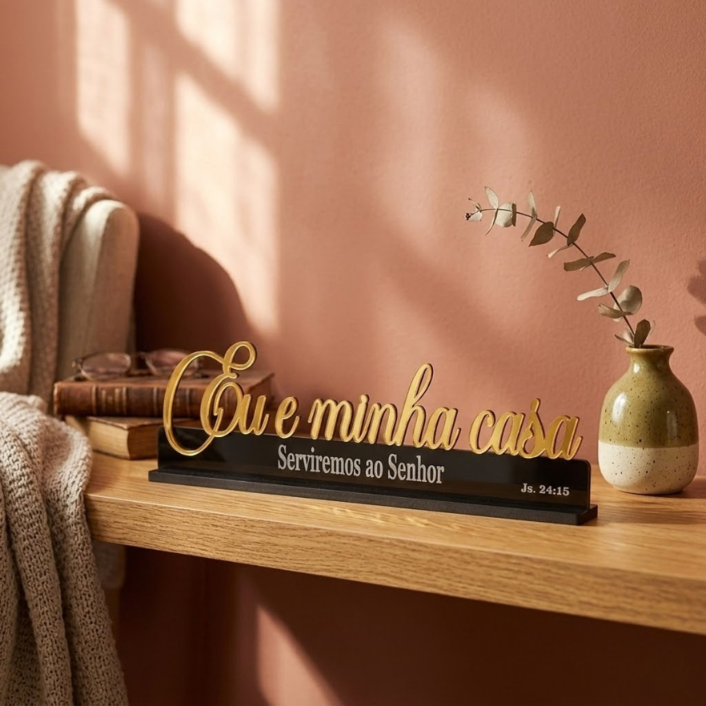 ✨ Leve mais fé, elegância e significado para a sua decoração com a peça “Eu e Minha Casa Serviremos ao Senhor”. Um item decorativo perfeito para deixar o ambiente mais acolhedor, bonito e cheio de propósito. Com acabamento sofisticado e visual moderno, essa peça combina muito bem com sala, aparador, estante, escritório, quarto ou cantinho religioso, trazendo destaque especial para a mensagem bíblica. 💎 Destaques do Produto ✅ Frase decorativa: Eu e minha casa serviremos ao Senhor ✅ Referência bíblica: Josué 24:15 ✅ Visual elegante e marcante ✅ Ideal para decorar ambientes internos ✅ Ótima opção para presentear ✅ Peça com estilo moderno e religioso ao mesmo tempo 📏 Medidas 30 x 10 cm 🏡 Indicado Para • Sala • Quarto • Escritório • Aparador • Estante • Ambiente religioso • Presente especial ⚠️ Observação As cores e pequenos detalhes podem apresentar leve variação conforme a iluminação da foto e a tela do aparelho.