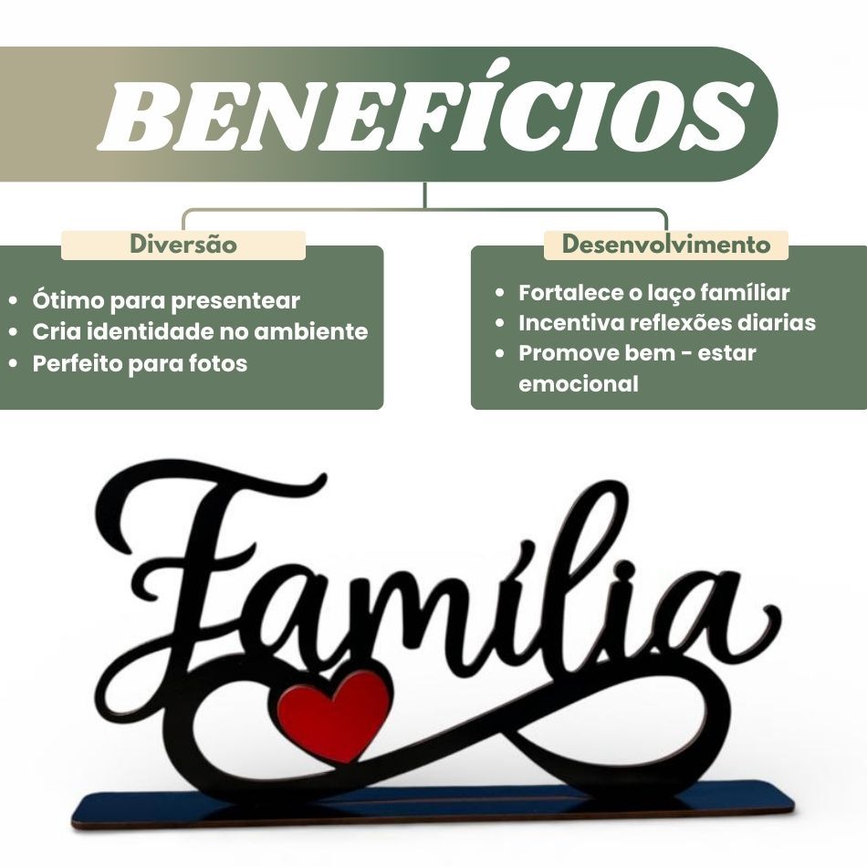 Placa Decorativa Familia MDF Coração Bancada Mesa Prateleira Enfeite Presente Casa Decoração