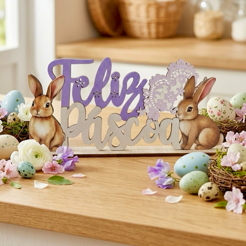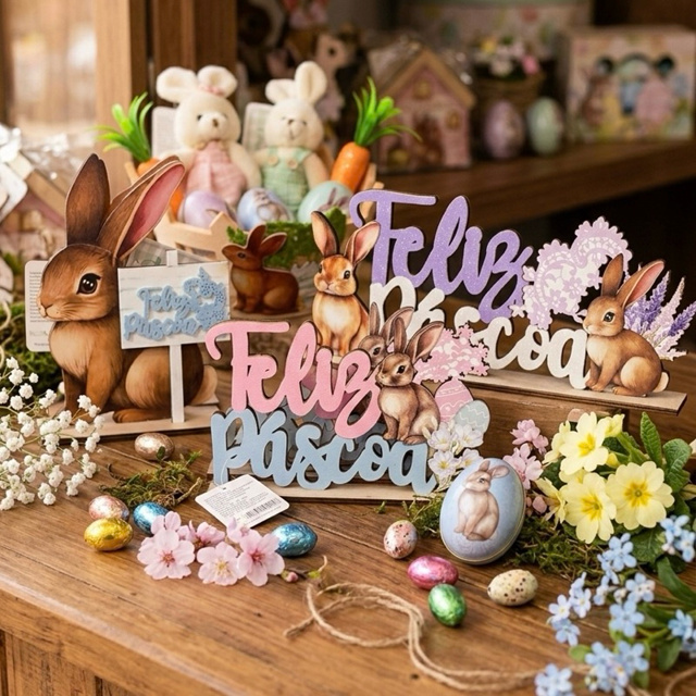 | Placa Decorativa Feliz Páscoa e Placa de Coelho para Prateleira Bal... este produto | R$ 19,00 | 47% | 4.8/5 | 89 |