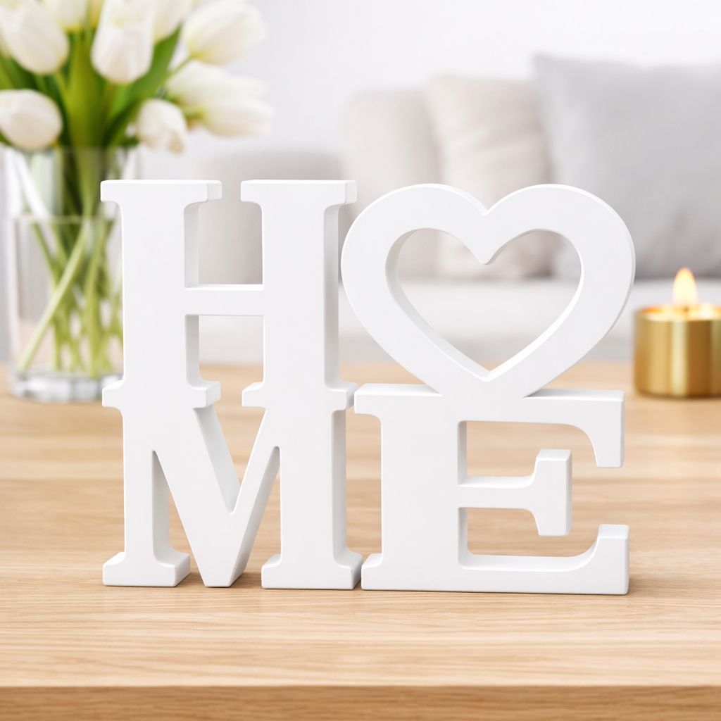 Placa Decorativa HOME Preto ou Branco 12cm Para Mesa Estante Decoração Casa Enfeite Moderno