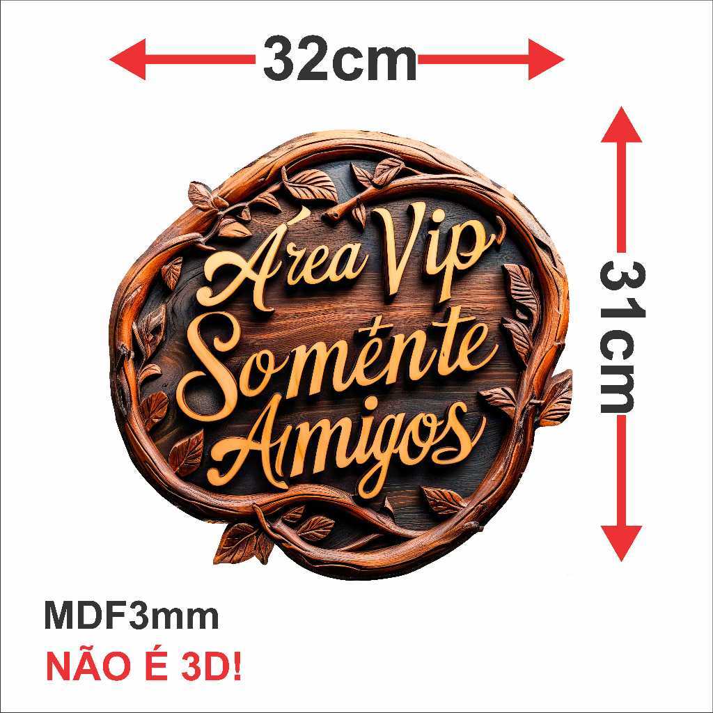 Placa Decorativa MDF 32x31cm – Área VIP Somente Para Amigos Deixe sua área gourmet com um toque exclusivo e acolhedor! A Placa Decorativa “Área VIP Somente Para Amigos” é perfeita para quem gosta de criar um ambiente elegante e divertido para receber convidados. Produzida em MDF 3mm, ela combina leveza, resistência e um design sofisticado que simula madeira entalhada, mas com um acabamento plano de alta definição. Instalação? Super prática! Acompanha fita dupla face, dispensando furos e ferramentas. Basta escolher o local e aplicar! ✅ Características do Produto Material: MDF 3mm resistente Tamanho: 32cm (largura) x 31cm (altura) Fixação: Fita dupla face inclusa Design: Exclusivo, com impressão de alta definição Peso leve e fácil instalação ✅ Por que comprar esta placa? ✔ Decoração sofisticada para área gourmet ✔ Instalação sem sujeira nem ferramentas ✔ Design exclusivo que imita madeira entalhada ✔ Ideal para presentear quem ama churrasco ✅ Sugestões de Uso ✔ Cantinho do churrasco ✔ Varanda gourmet ✔ Barzinho caseiro ✔ Decoração temática para ambientes rústicos ✅ Cuidados Limpe com pano seco ou levemente umedecido Não utilize produtos abrasivos ou solventes Evite exposição direta ao sol e umidade
