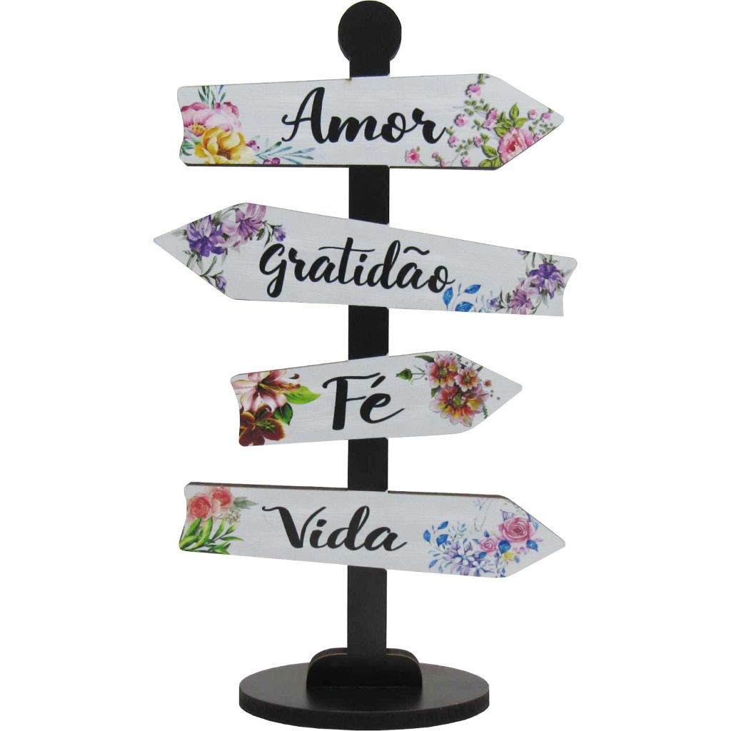 Placa Decorativa Mesa Seta Palavras Motivacionais Amor Gratidão Fé Vida